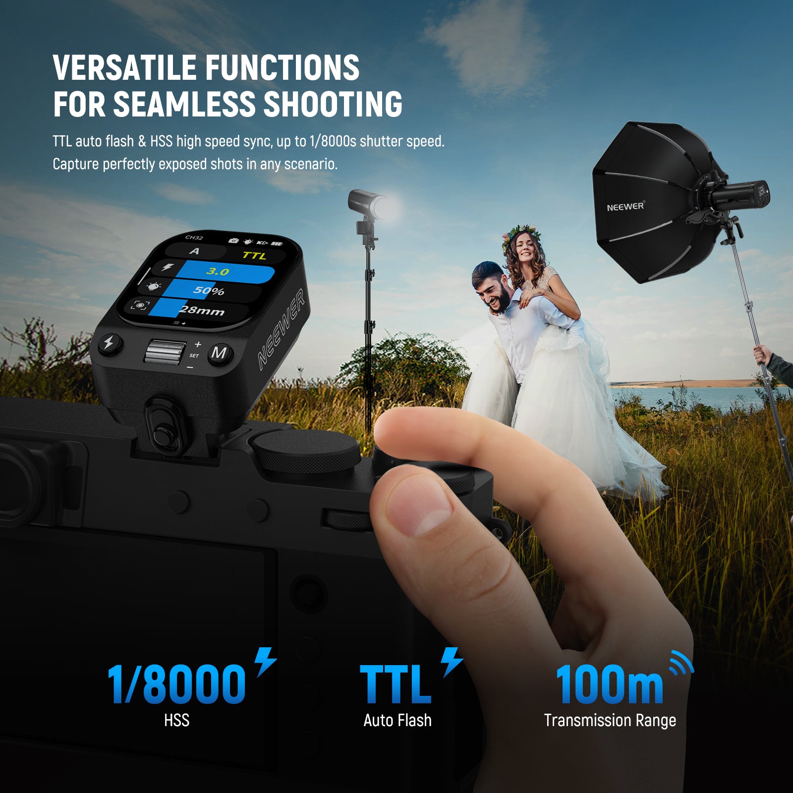 NEEWER flash triggers are versatile and professional, offering powerful features to enhance your photography. These light triggers support a wide range of functions, including TTL, multi-flash, manual flash, flash exposure compensation (FEC), magnification, group modeling lamp control, group zooming, and more. Our collection includes flash triggers compatible with Canon, Sony, Nikon, and other major brands. Choose a reliable flash trigger to take your photography to the next level.