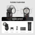 - Great Performance & Modeling Lamps- 76Ws max output, 5600K stable color temperature, and a circular Fresnel flash head ensure even, soft, and natural light effects. The flash head with 0-330° swivel and -7-120° tilt bounces flashes freely. Two upgraded 2W 3300K LED modeling lamps (one below the flash head) offer 10 brightness levels (01-10)