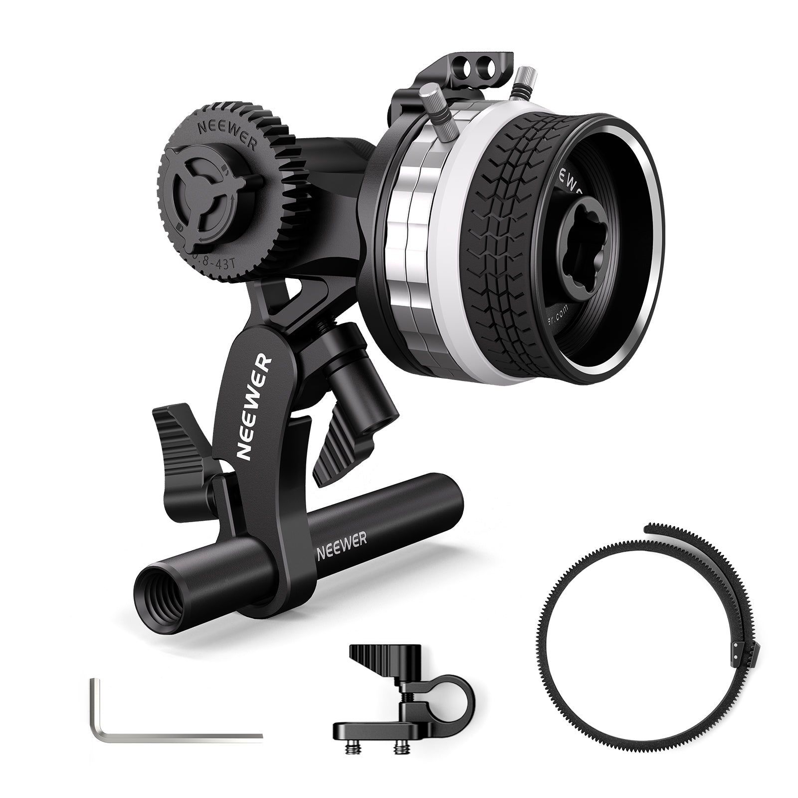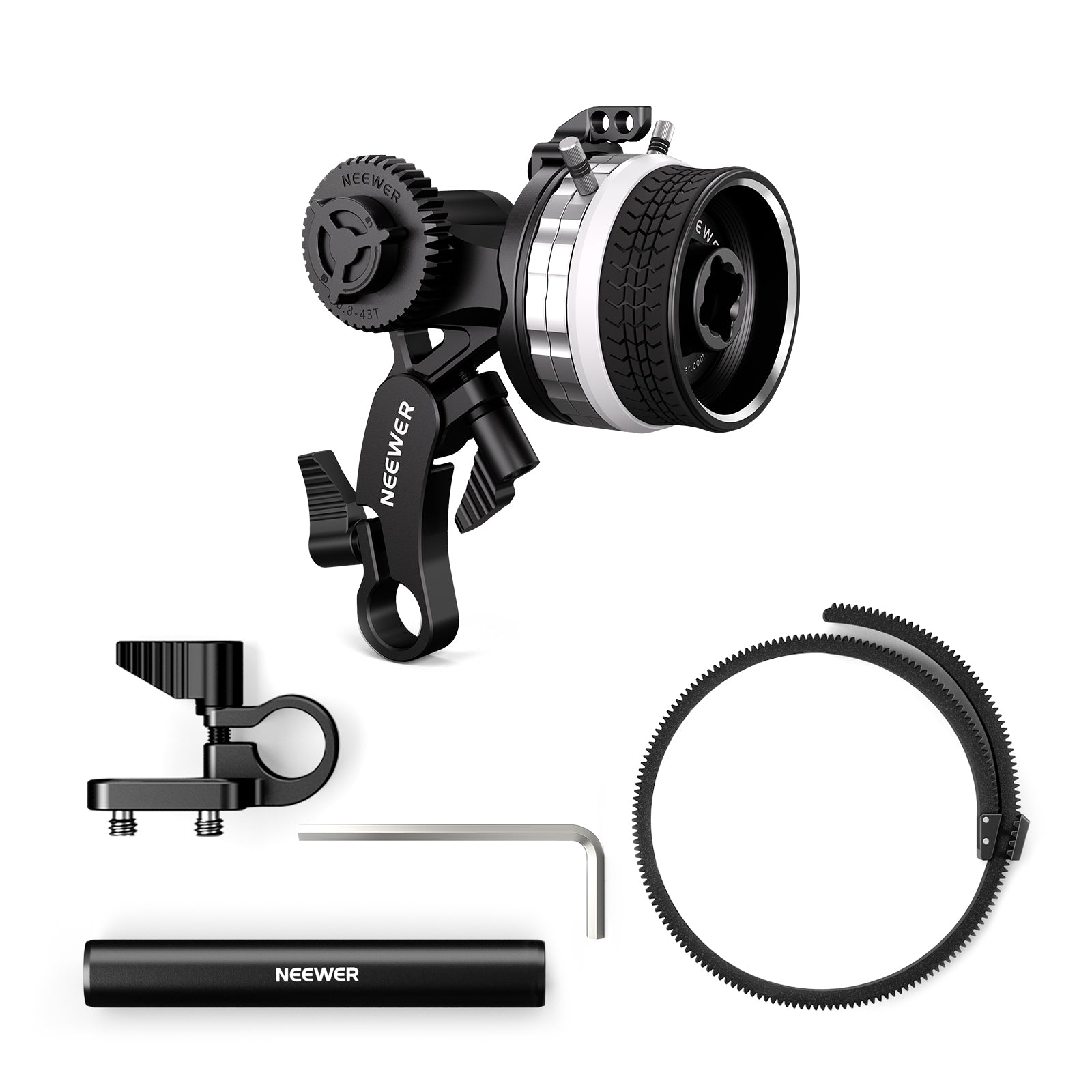 - Smooth Manual Focus- NEEWER PG001 Mini Follow Focus enables smooth manual focus for video recording. The adaptable lens gear ring fits a wide range of camera lenses up to 114mm in diameter. Merely 11.3oz (320g) in weight, the follow focus can stay in your bag and travel around the world with you