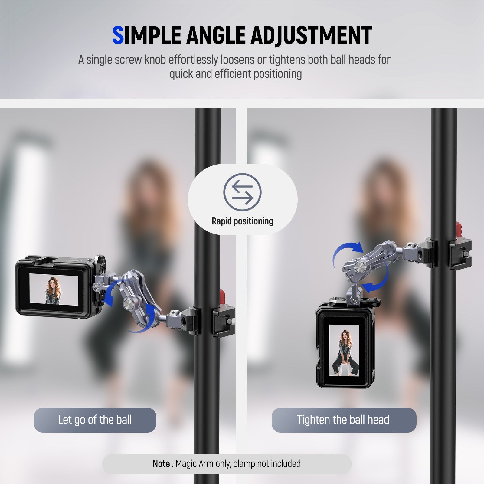 • Ultra Lightweight Design- Optimized with a reduced weight (2.7oz/76g), this magic arm is more ideal for outdoor photography, filmmaking, vlogging, and live streaming. At 4.6"x1.7"x0.9"/118x42x22mm, it is portable and easy to fit inside your bag