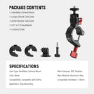 • 360° Rotation- Featuring smooth 360° horizontal adjustment, the motorcycle camera mount kit compatible with GoPro action camera photography accessories allows you to capture from your desired perspective without removing the camera