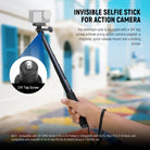- Invisible Selfie Stick for Action Camera- The portable extension pole stand holder is equipped with a 1/4" top screw, a three prong action camera adapter attachment, a magnetic quick release mount and a locking screw for compatibility with DJI OSMO Action 5 Pro 4 3 2 Pocket 3 Creator Combo, compatible with GoPro Hero 13 Go Pro 12 11 10 Black, and compatible with Insta360 X5 X4 X3 Insta 360 Ace Pro Go 3S AKASO Brave 8 7 EK7000, etc., as action camera gear and photography accessories kit