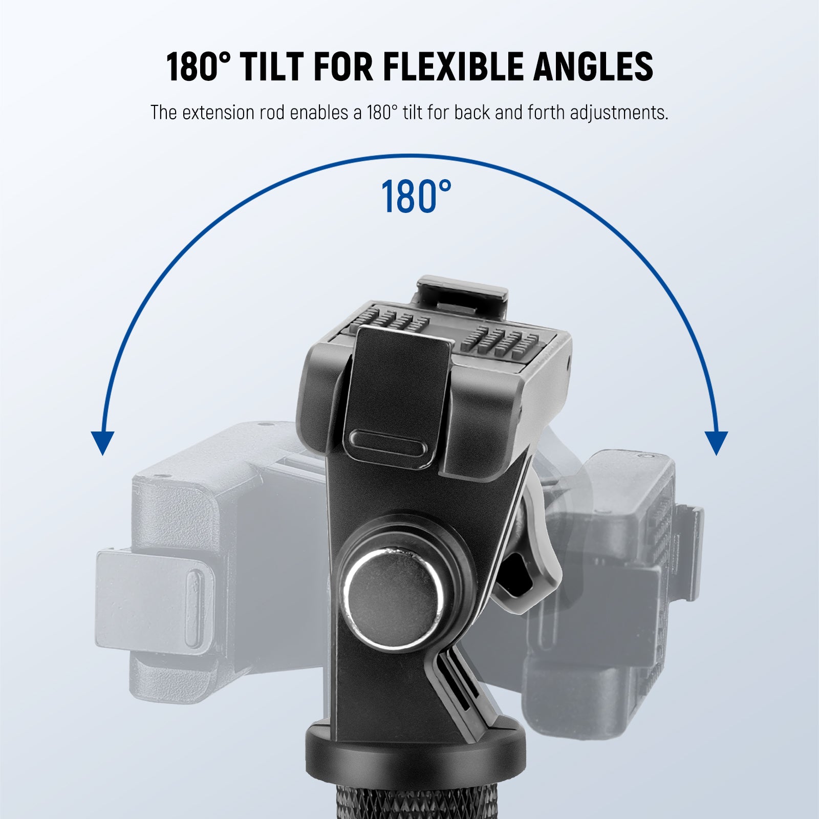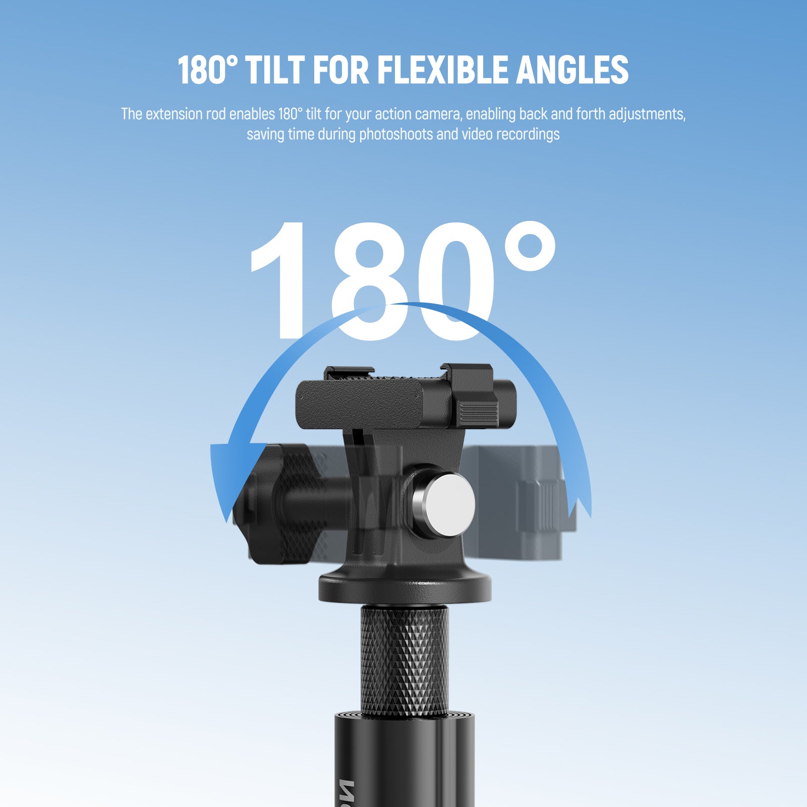 - 180° Tilt for Flexible Angles- The extension rod enables 180° tilt for your action camera, enabling back and forth adjustments, saving time during photoshoots and video recordings