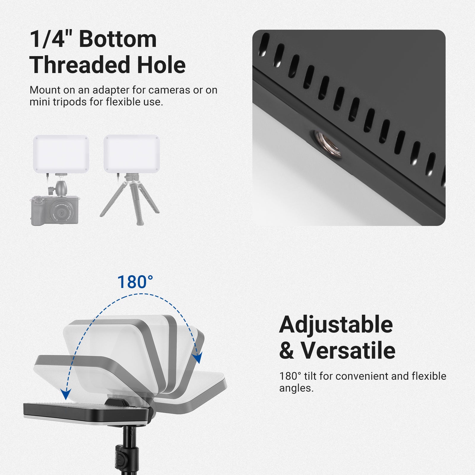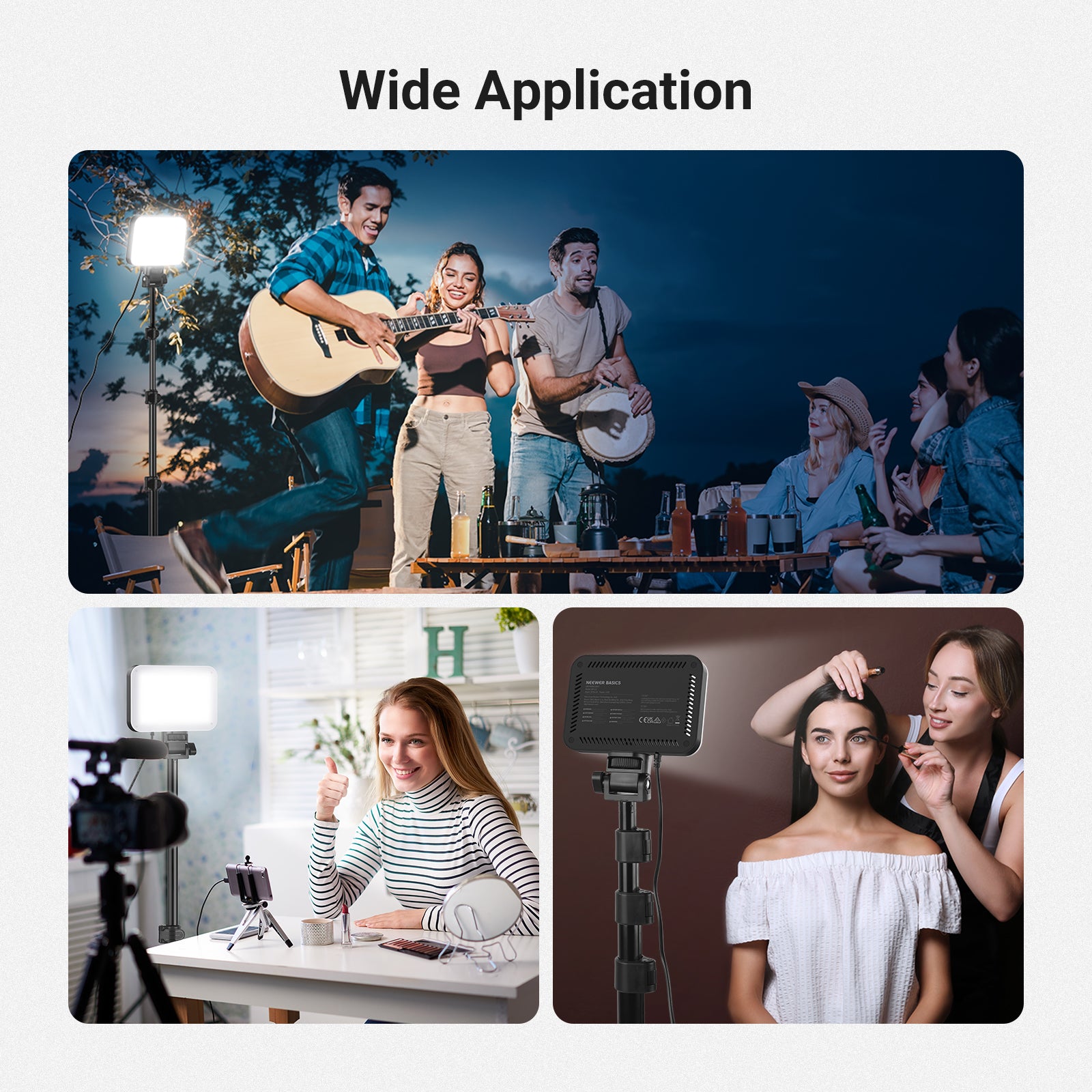 - Flexible Use- The LED panel light for filming comes with a tripod stand that extends from 19.7"-53.2" and tilts 180° back and forth. A professional photography lighting kit for studio photoshoots, barbers, makeup artists, travel films, and on location shots