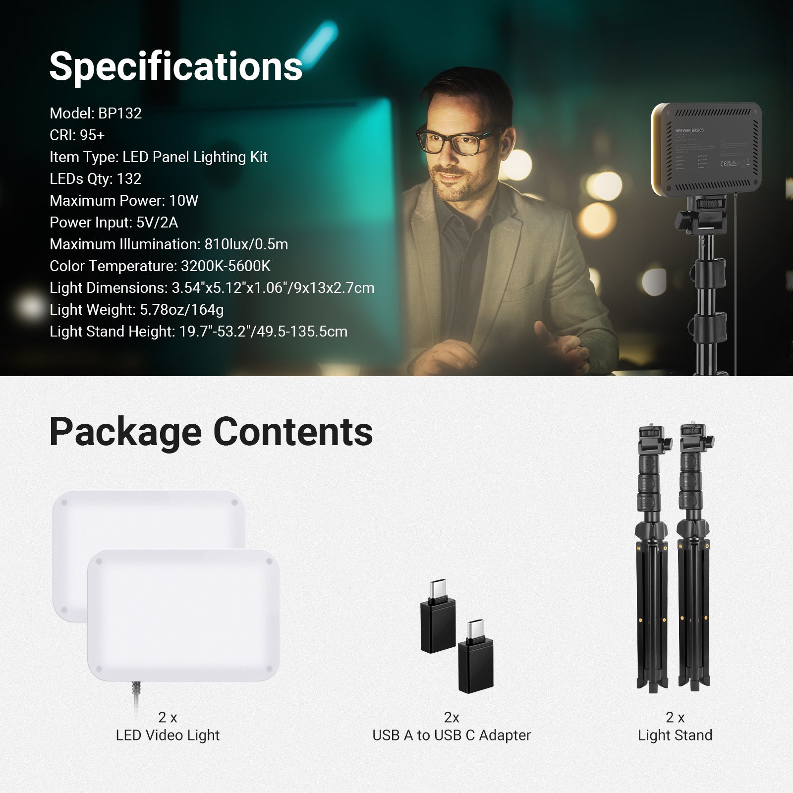 NEEWER BASICS BP132 2 Pack LED Video Light Panel Lighting Kit