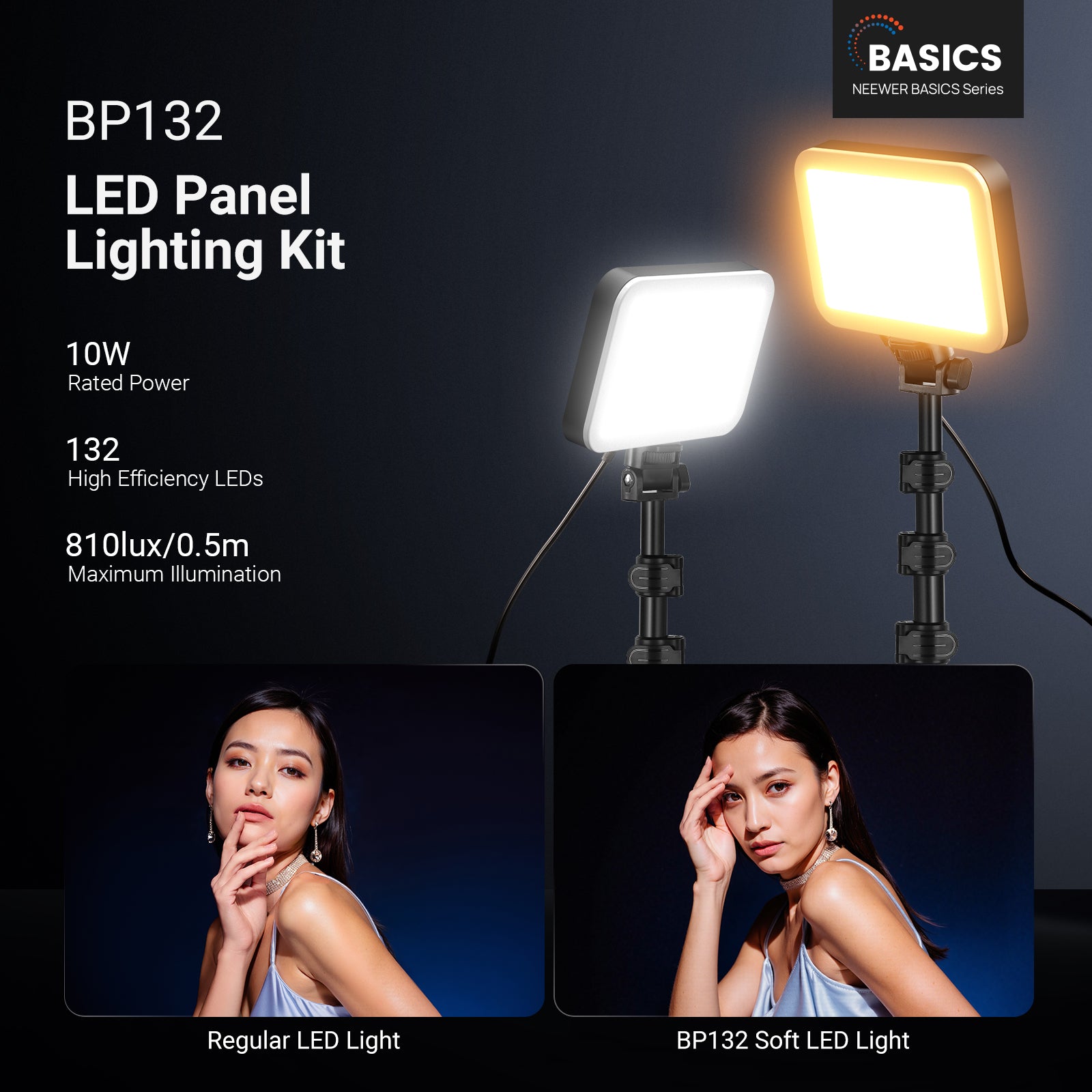 NEEWER BASICS BP132 2 Pack LED Video Light Panel Lighting Kit