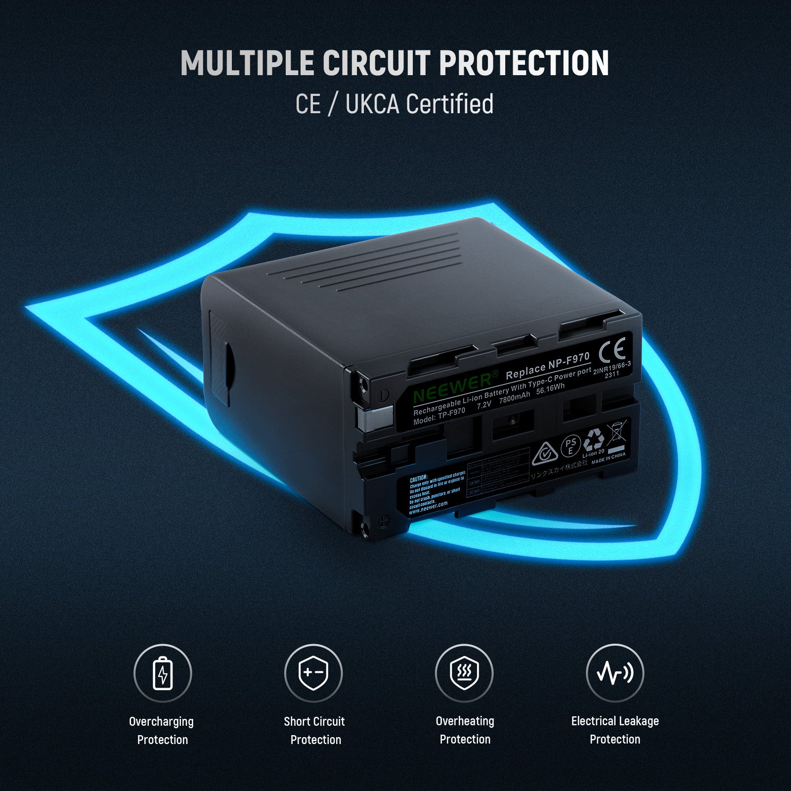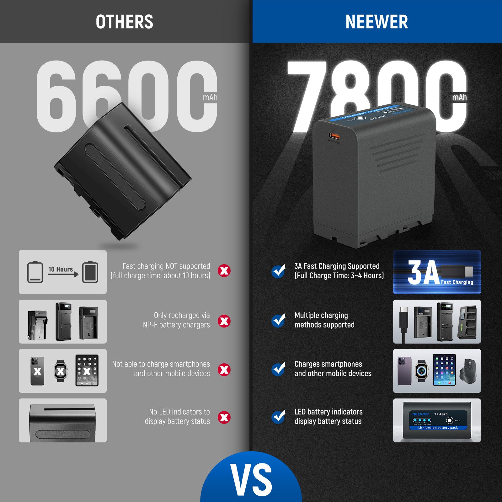 NEEWER TP-F970 2Pcs NP-F970 Replacement Batteries 7800mAh