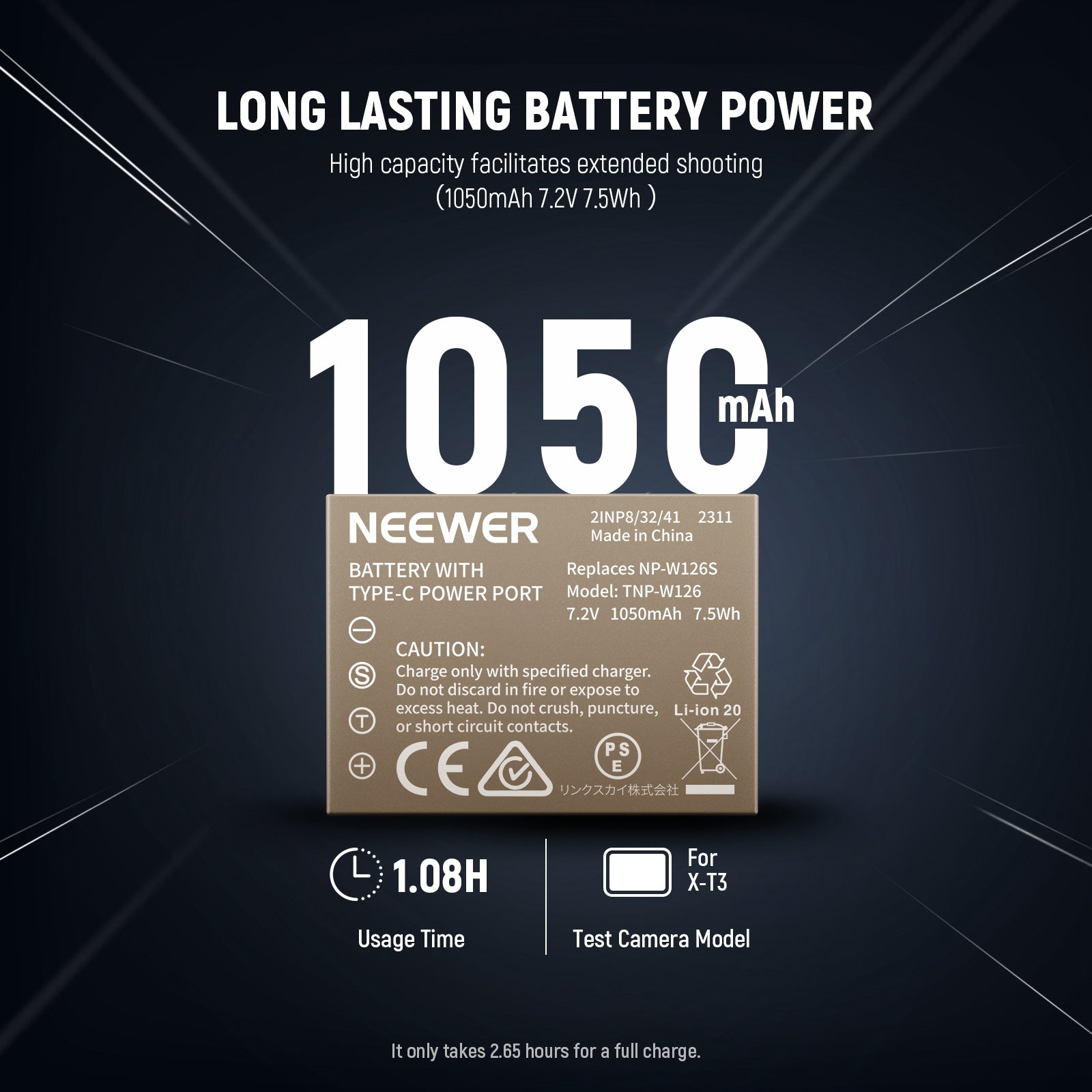 NEEWER TNP-W126 NP-W126S 1050mAh Power Battery For Fujifilm