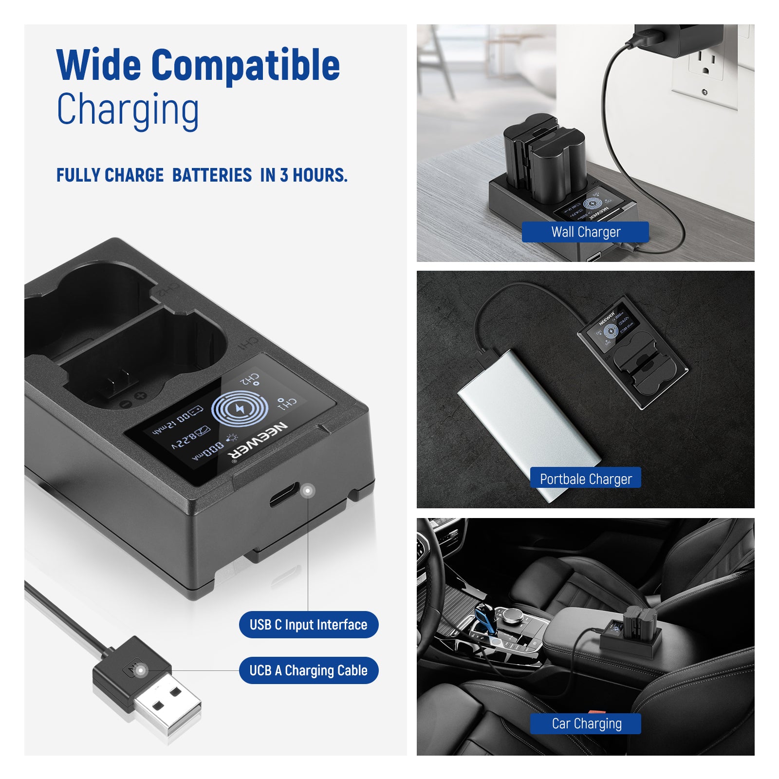 • Convenient Dual Slot USB Charger- The included USB battery charger allows you to charge the NP-W235 batteries in more than one way. With USB Type C port, a USB Type C to Type A cable, and a fixed USB Type A cable, easily connect the battery charger to a wall socket, car charger, or even a portable charger. The dual slot design lets you charge the two batteries simultaneously. Quick charge in 3 hours, whether with one battery or two batteries inserted