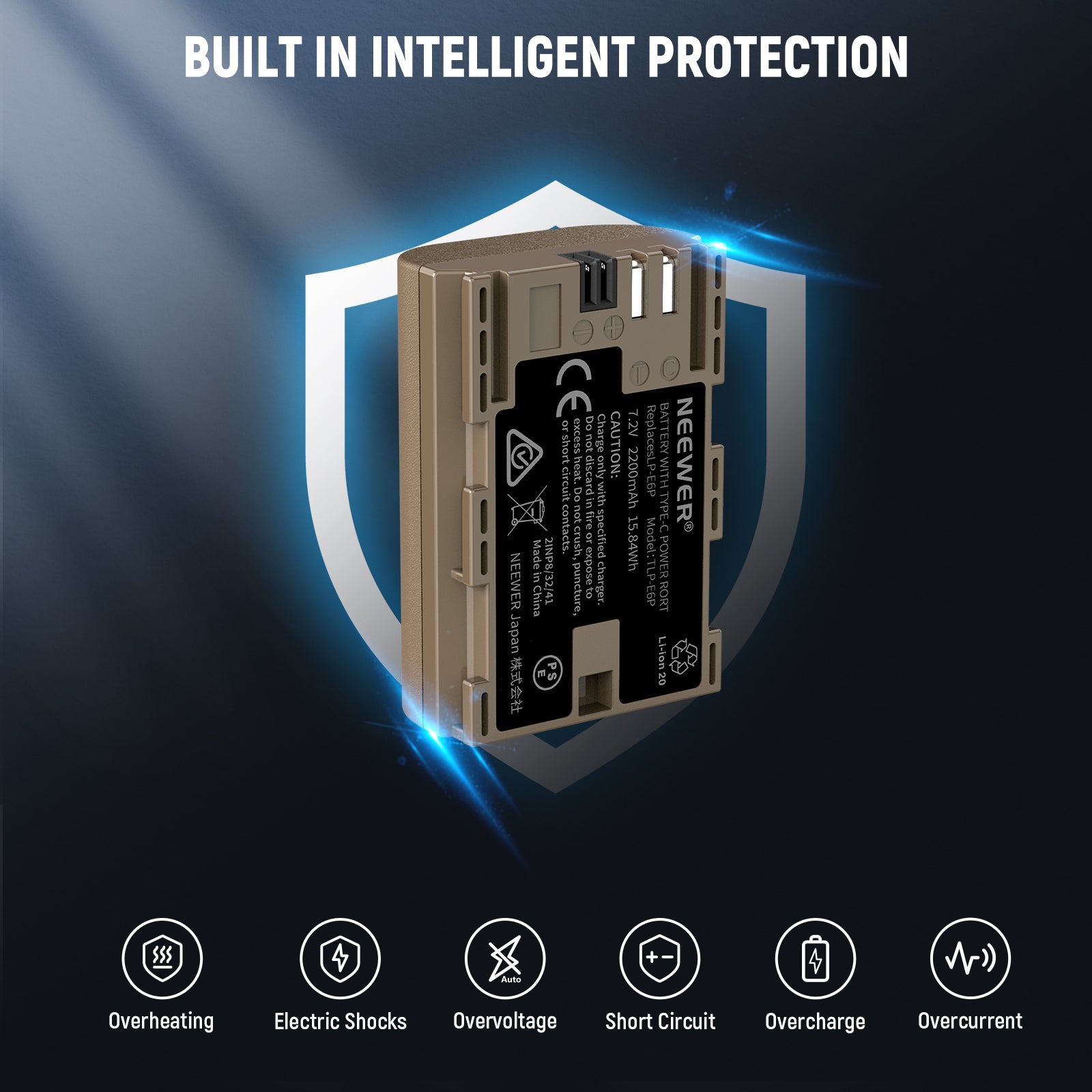 NEEWER 2200mAh LP-E6P LP-E6 LP-E6N LP-E6NH Replacement Battery with Type C