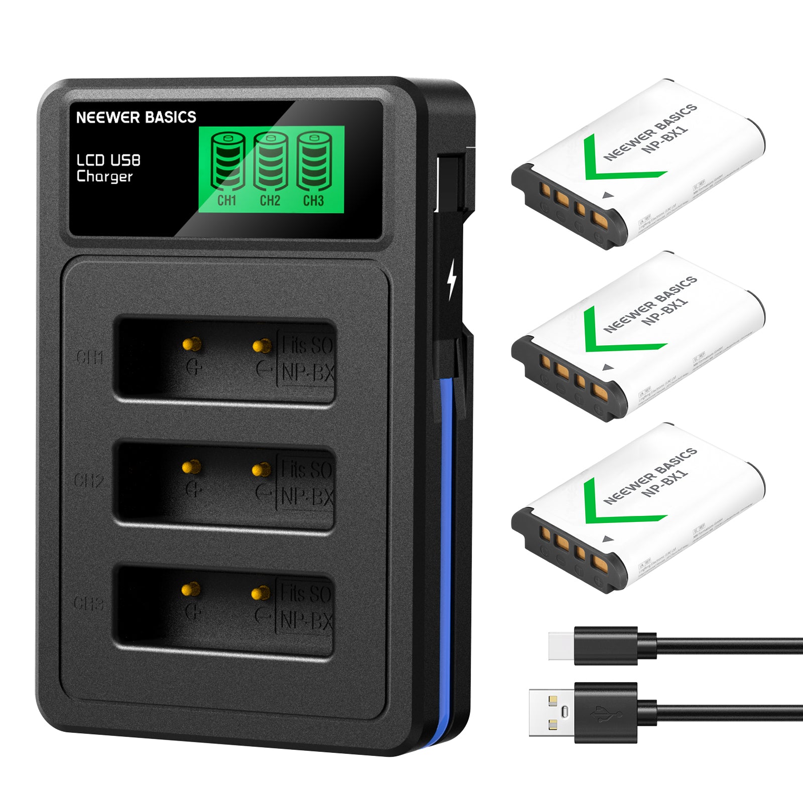 - Introducing NEEWER BASICS- Simple and practical, NEEWER BASICS is an economical product line that focuses on essential functions and designs, without unnecessary extras and materials. The kit includes three 1090mAh NP-BX1 replacement batteries and a three channel USB charger for NP-BX1, providing robust power backup for extended, continuous photo shooting and video recording sessions
