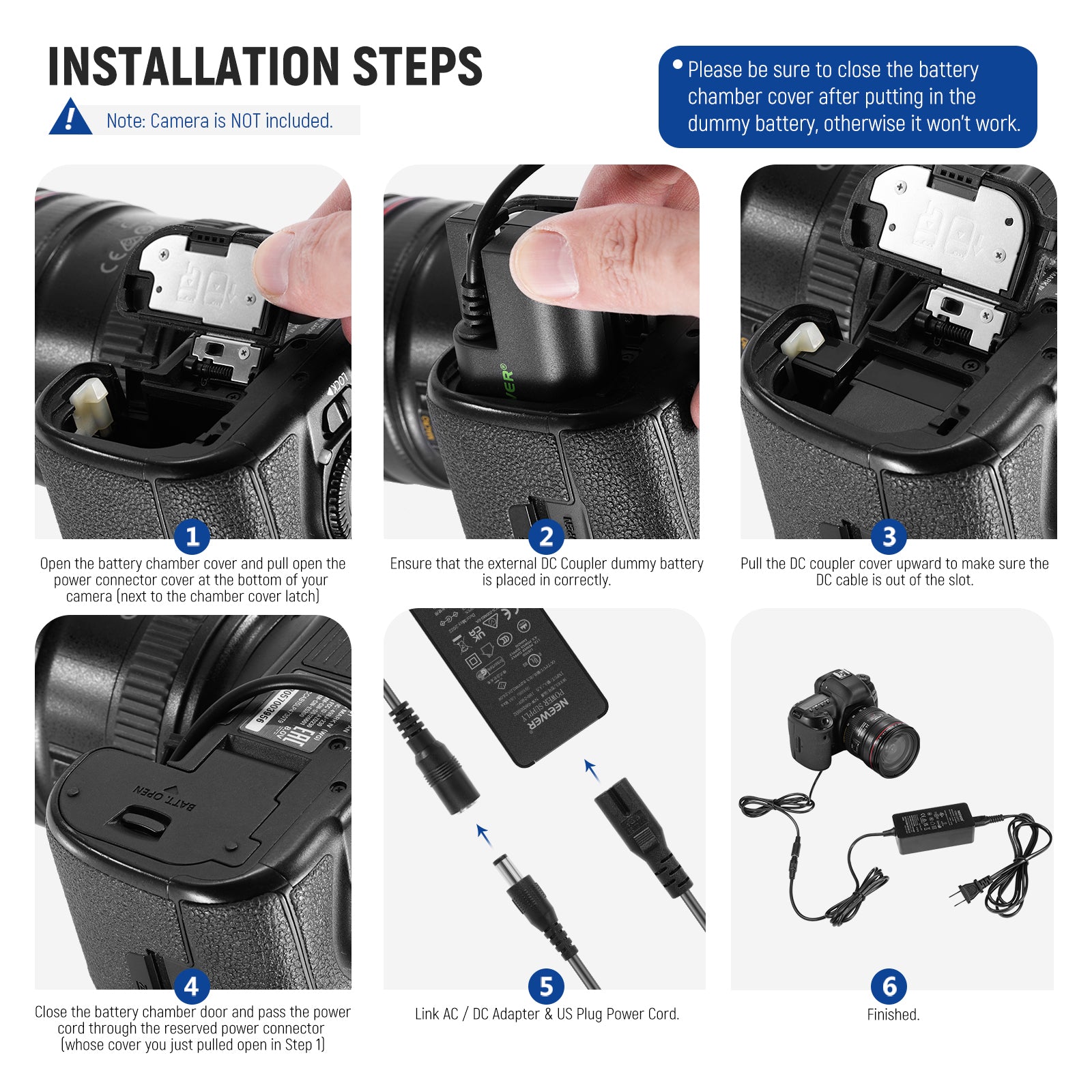 NEEWER LP-E6/E6N/E6NH Canon Replacement Dummy Battery