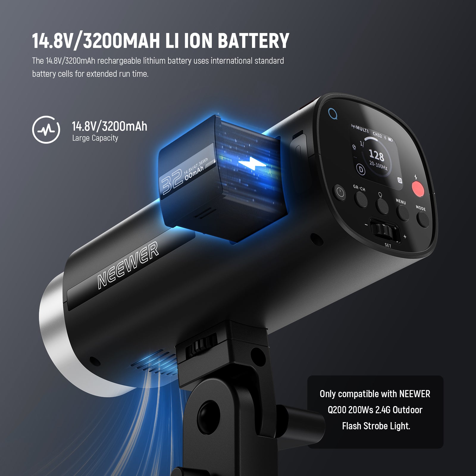 • Only for Q200 Strobe Flash- Exclusively compatible with NEEWER Q200 2.4G Outdoor Flash Strobe Light, ensuring use for extended periods, for studio photoshoots, outdoor photography, or on location filming. Note that the Q200 flash is sold separately