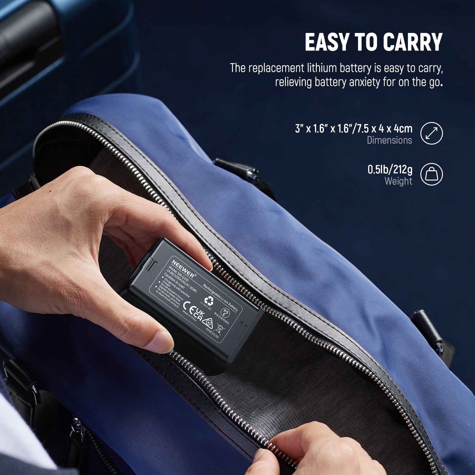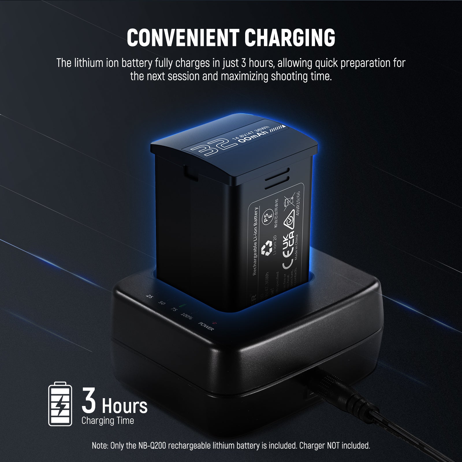 Product overview of the NEEWER NB-Q200 Rechargeable Lithium Battery
