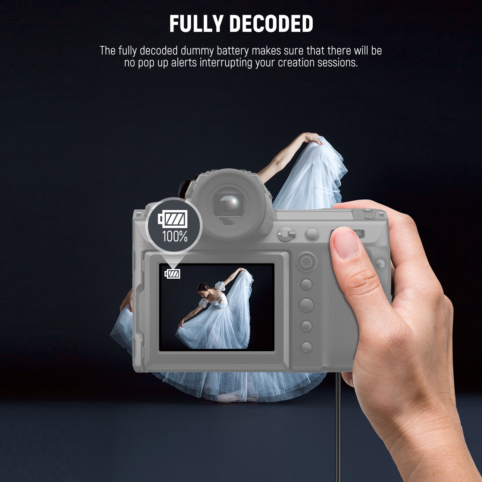 - 144.6"/367cm Super Length- With a 36.6"/93cm DC coupler, a 49"/124cm AC power adapter, and a 59"/150cm US plug AC cord, the dummy battery kit (combined length: 144.6"/367cm) offers ample cable length for flexible setup and positioning, adapting to various shooting environments effortlessly
