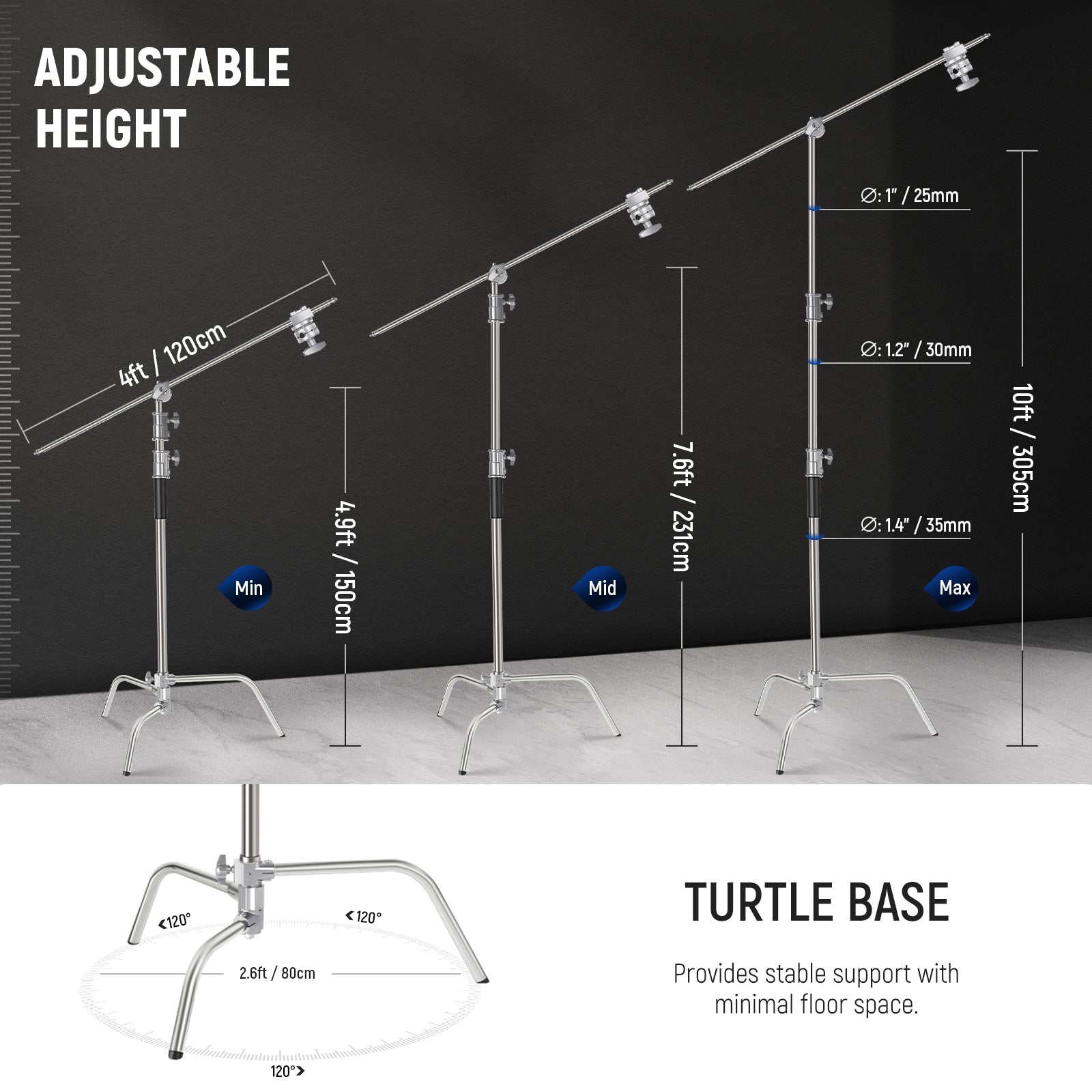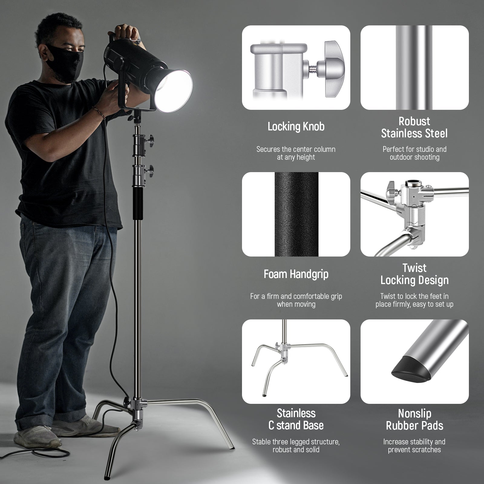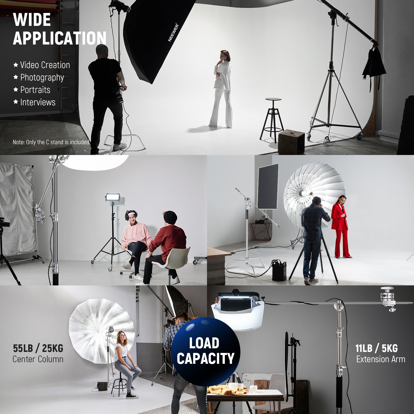 In addition, the C-stand is also characterized by its high stability. It can be suitable for a variety of photographic environments, even if it is a complex landscape, such as steps, it can also be stable to support and protect the photographic equipment, to ensure the safety of the shooting process. If you purchase a NEEWER C-stand, it will also be very easy to open and store, which makes it very convenient to operate.