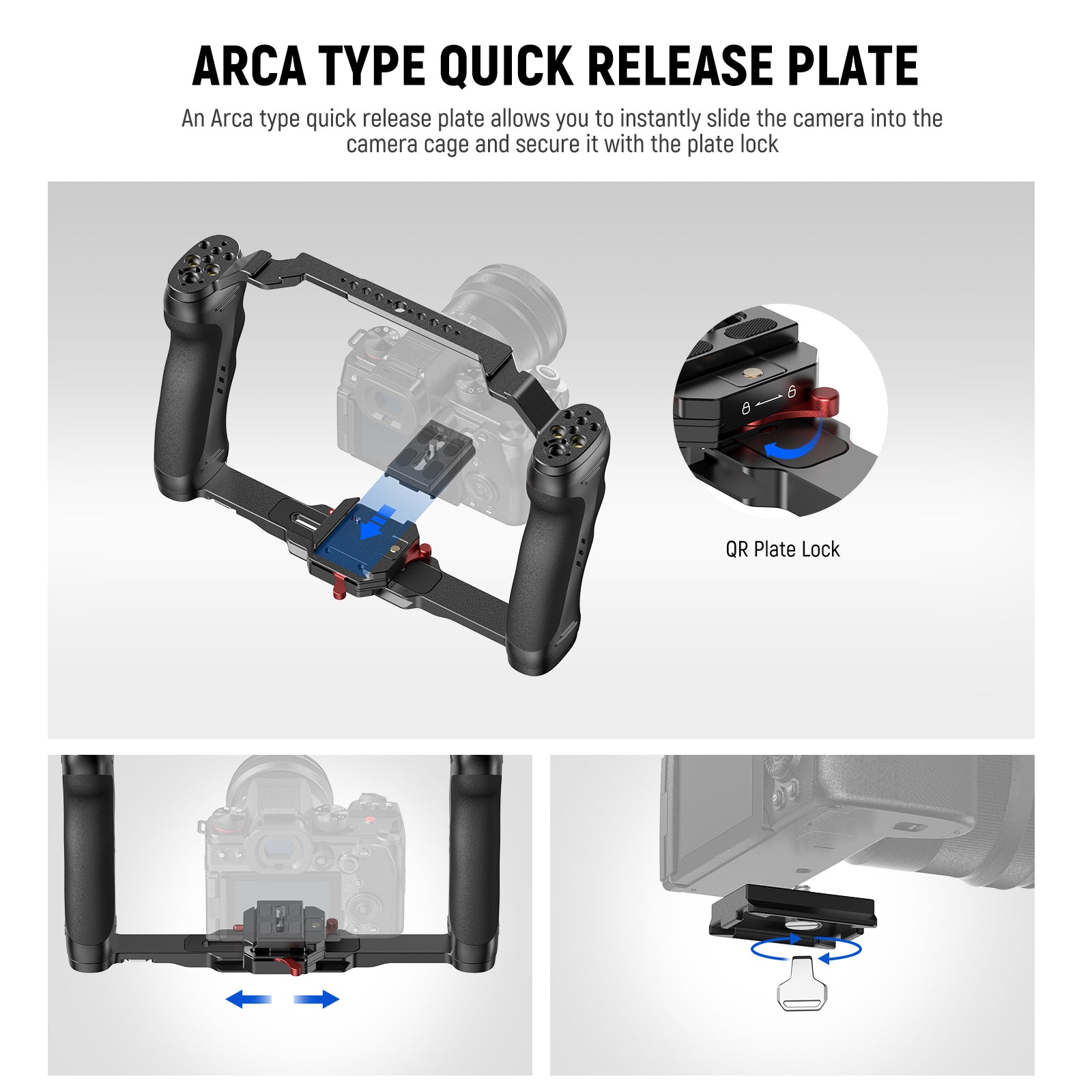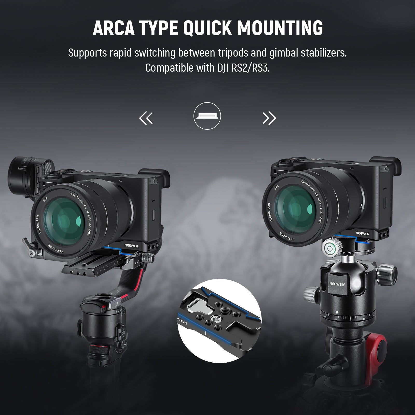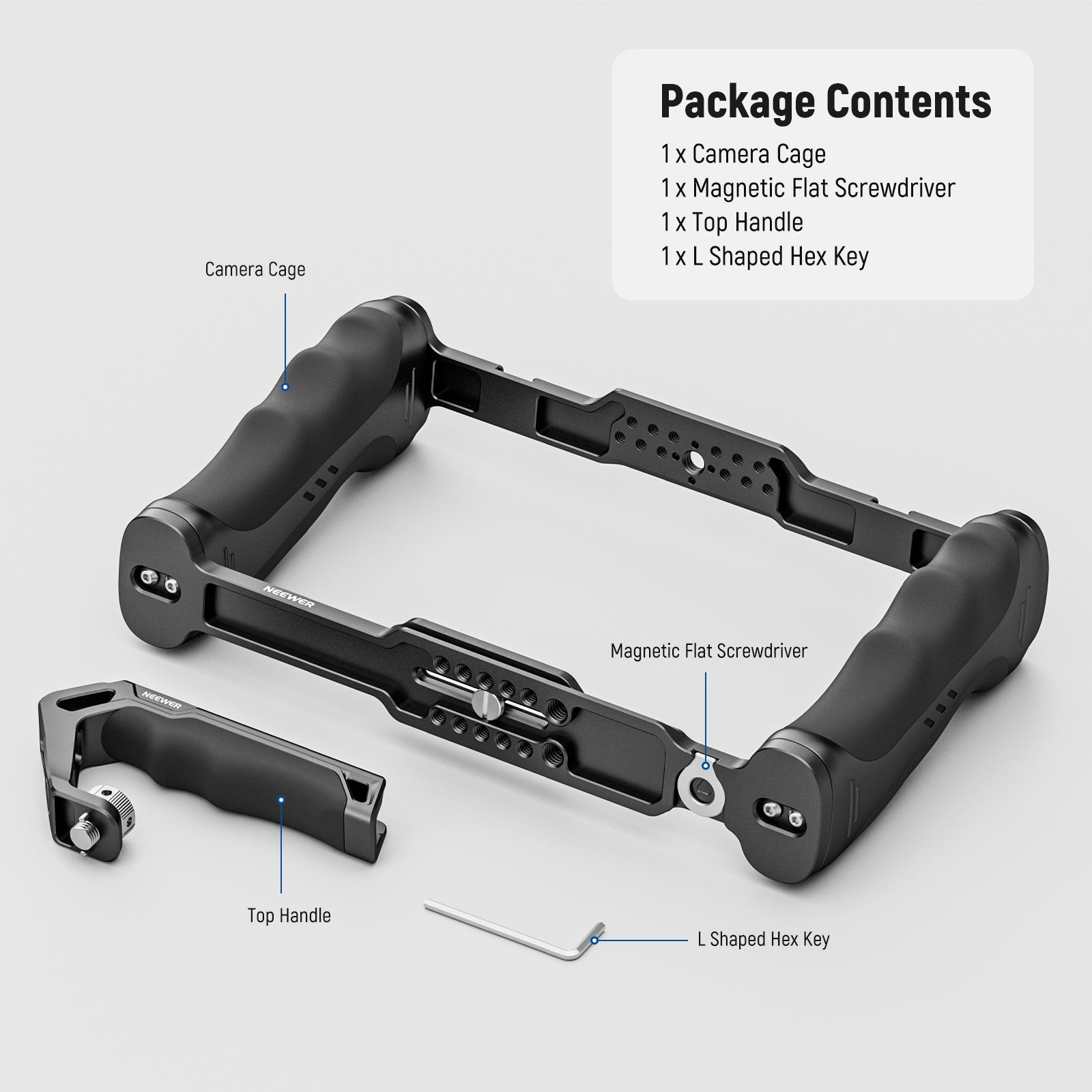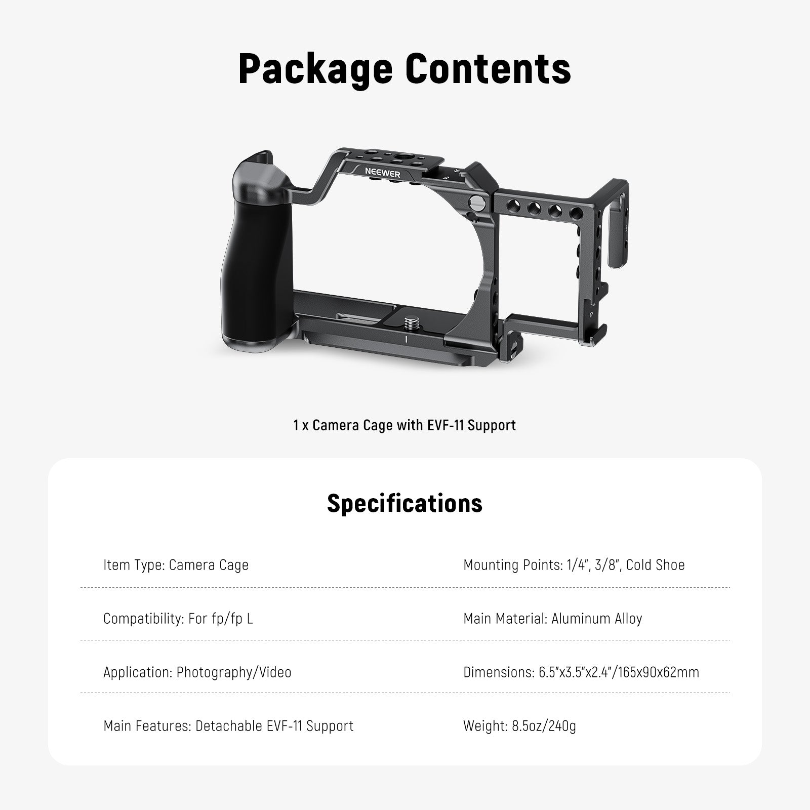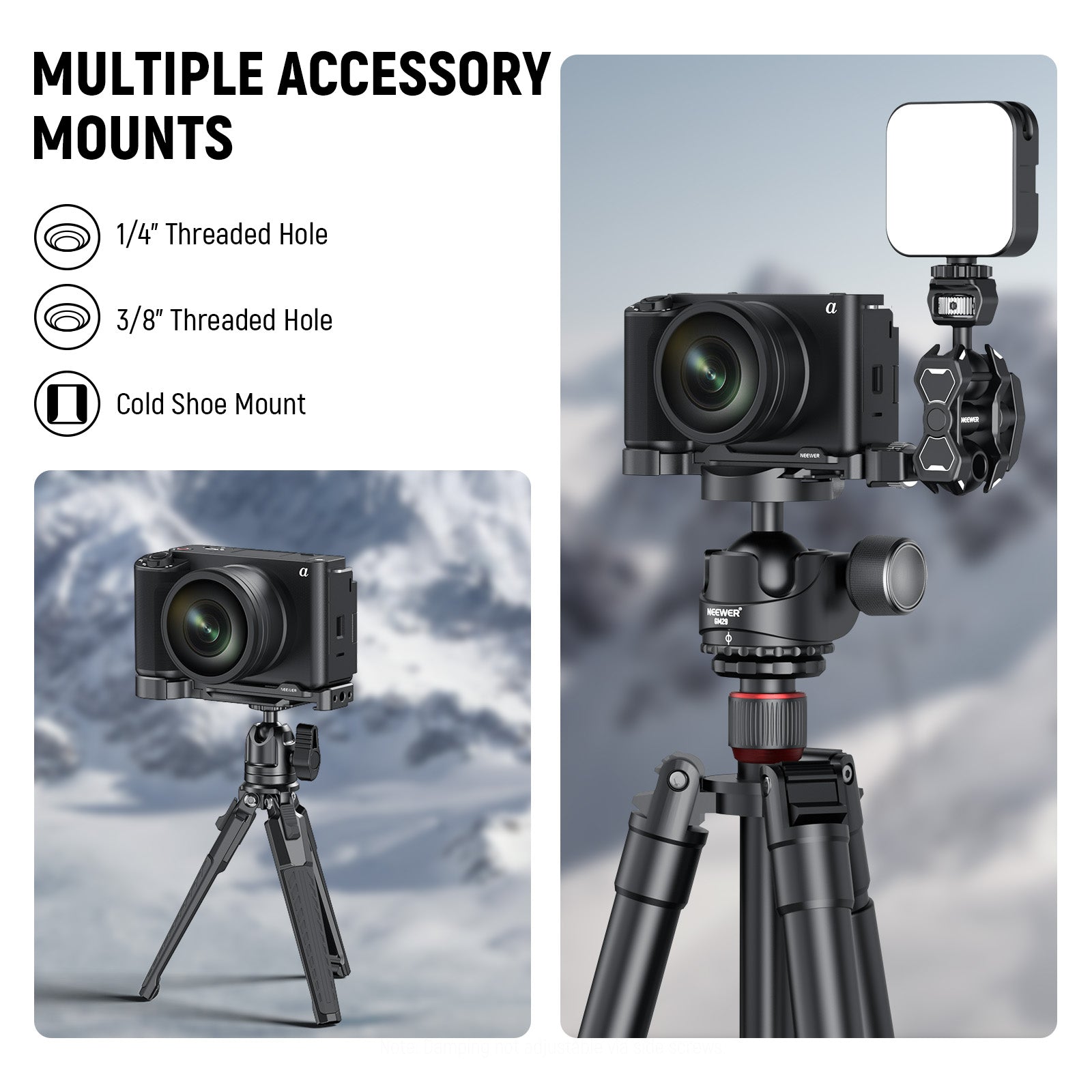 NEEWER offers camera cages, which provide thorough protection and effortless handheld shooting experiences. In addition, our collection includes camera grips and camera baseplates. These camera cages and grips can keep all buttons fully accessible. They are lightweight yet reliable protection. Choose a professional and suitable camera cage, grip, or baseplate.