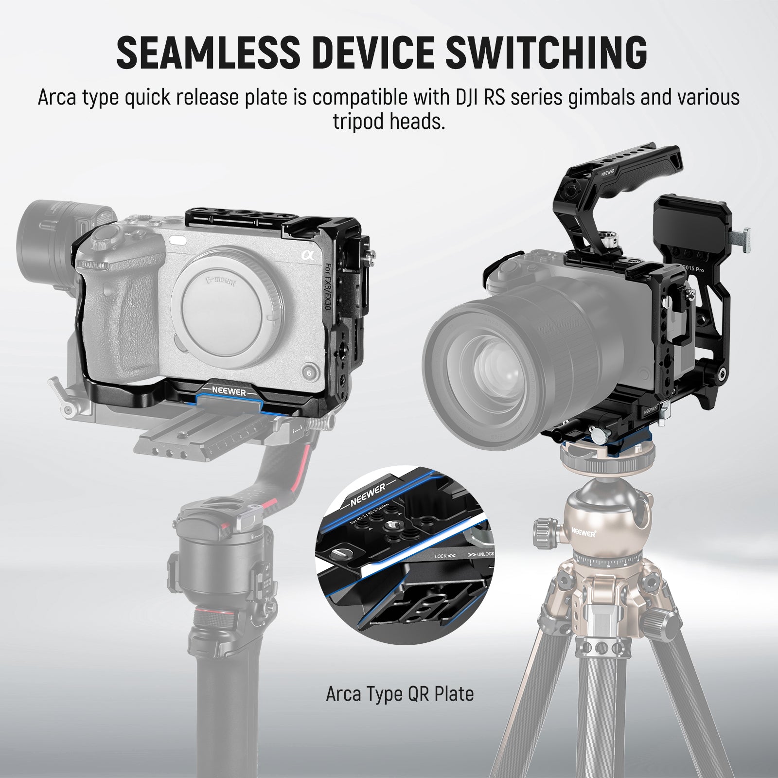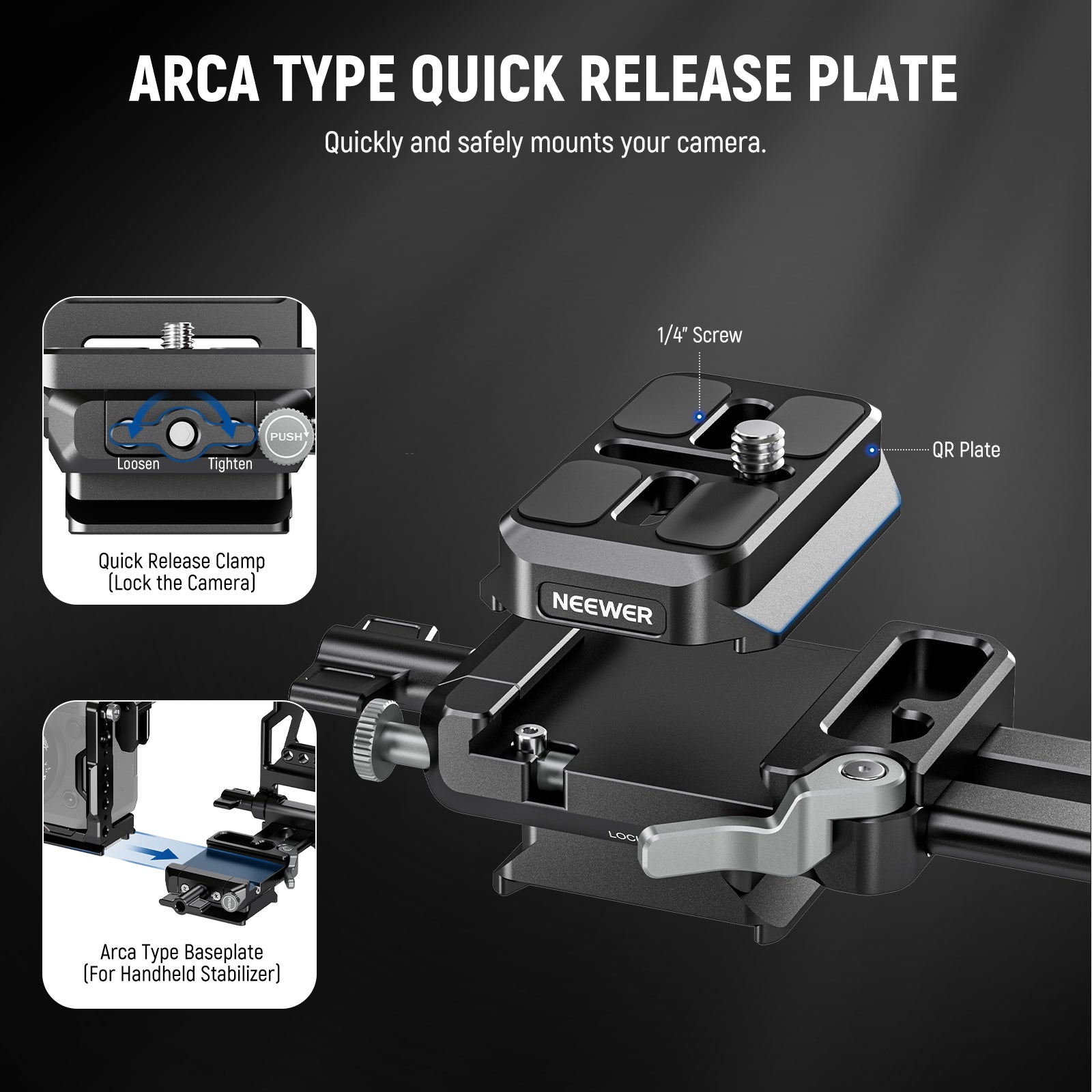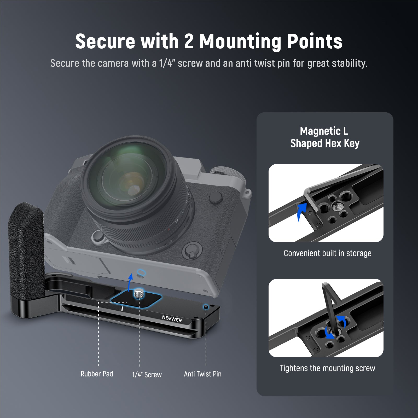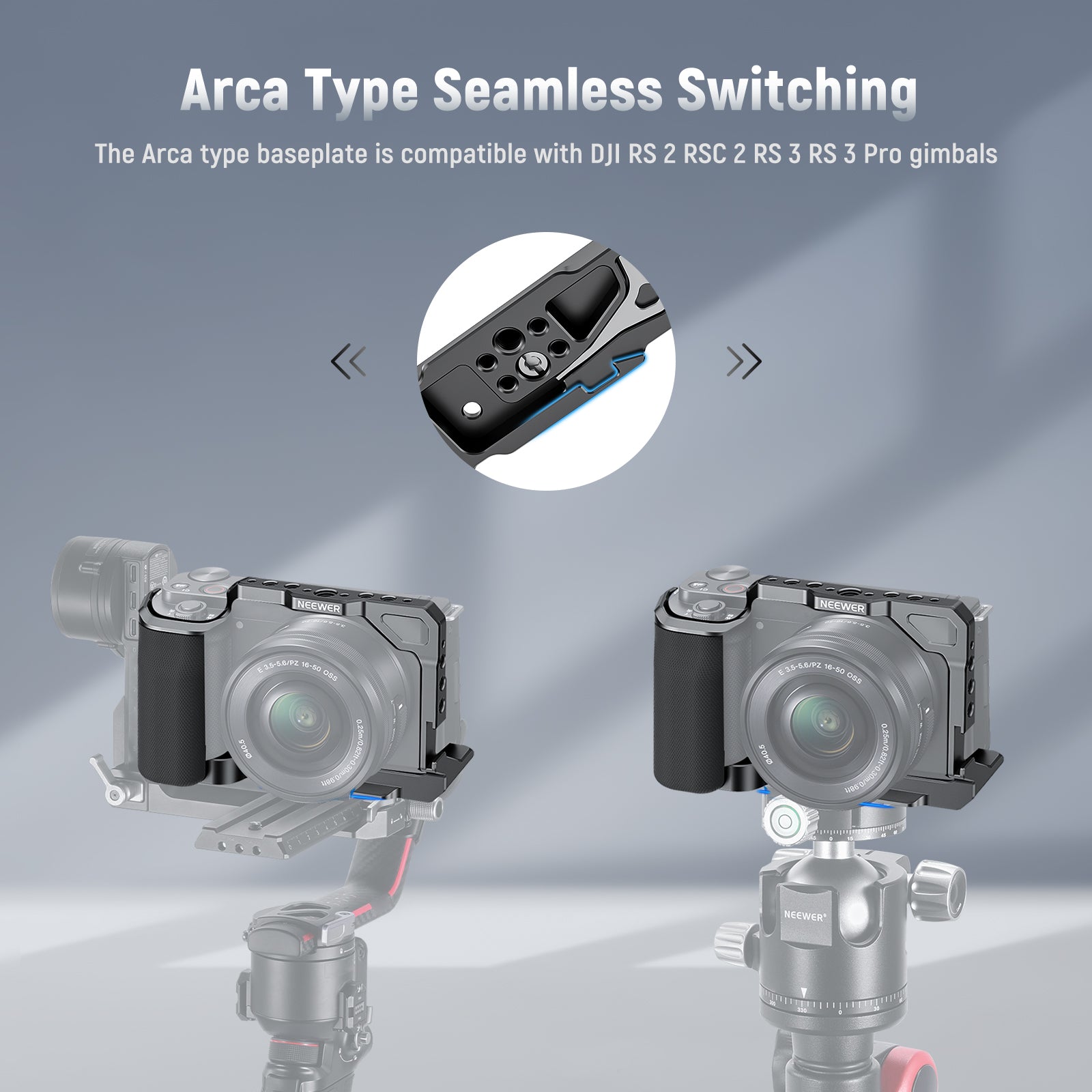 NEEWER offers camera cages, which provide thorough protection and effortless handheld shooting experiences. In addition, our collection includes camera grips and camera baseplates. These camera cages and grips can keep all buttons fully accessible. They are lightweight yet reliable protection. Choose a professional and suitable camera cage, grip, or baseplate.