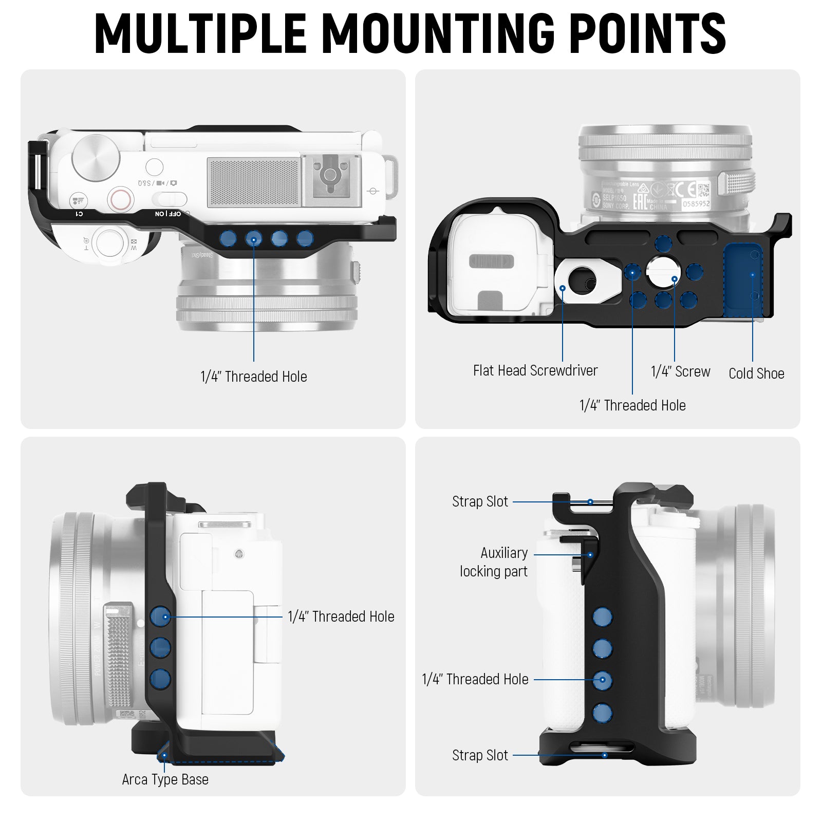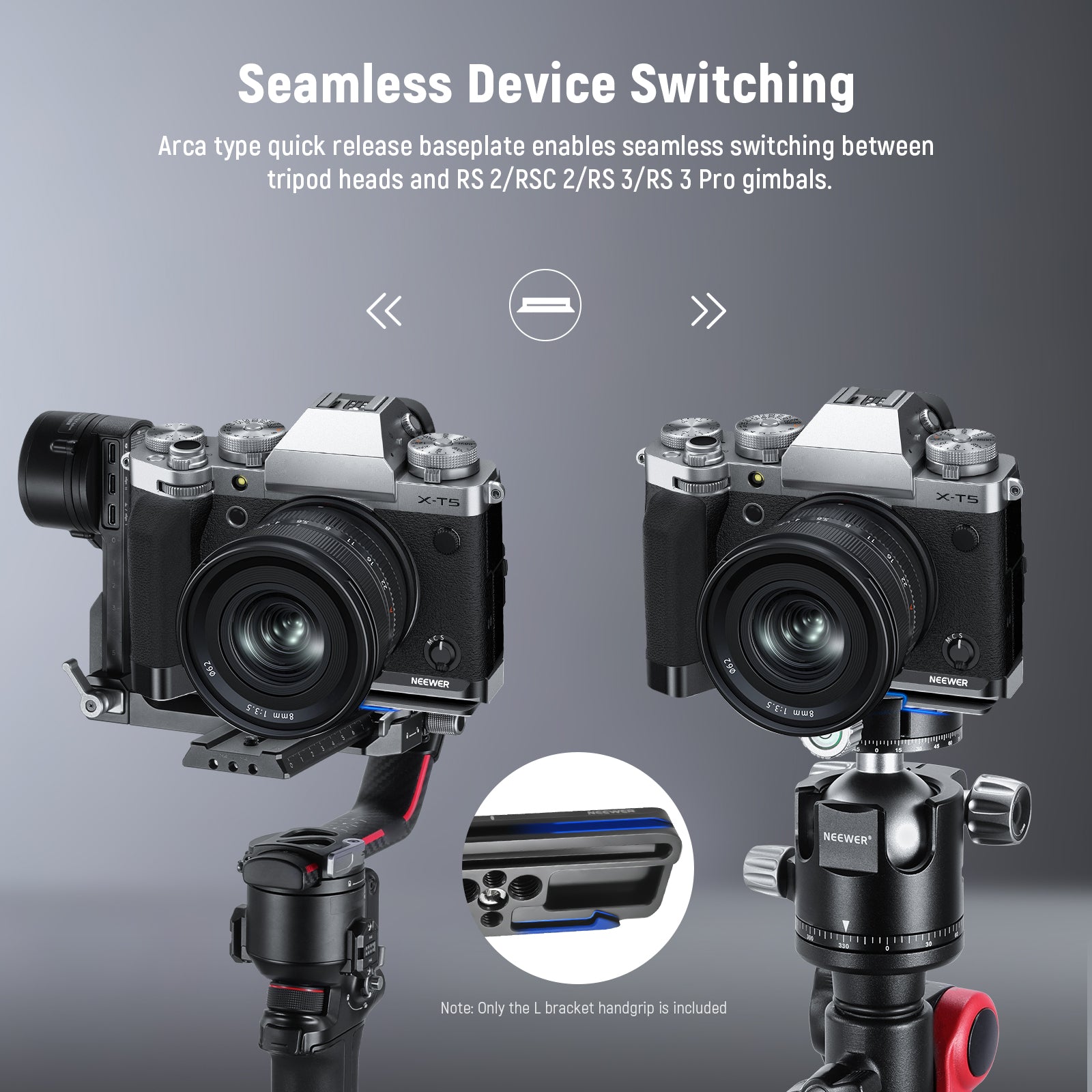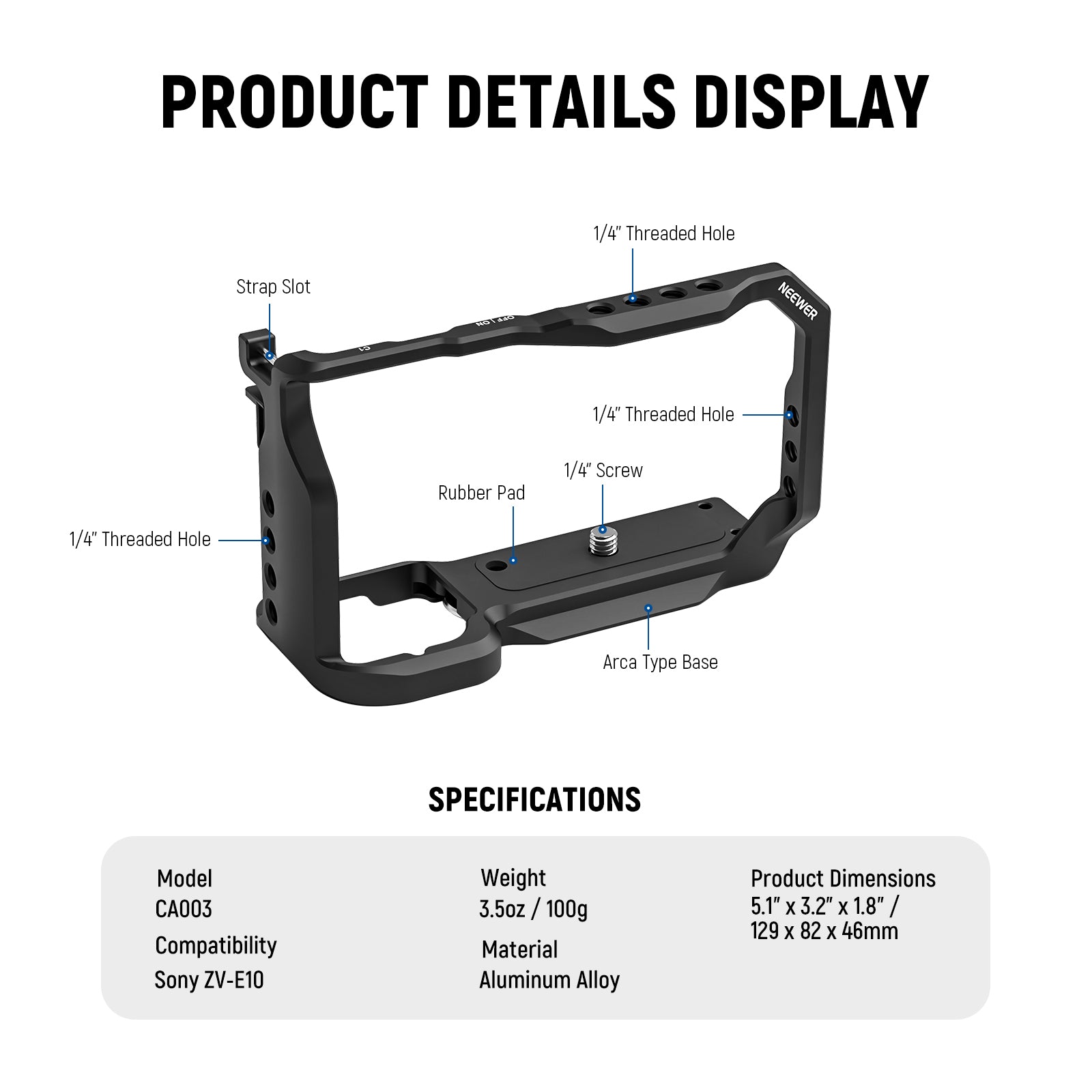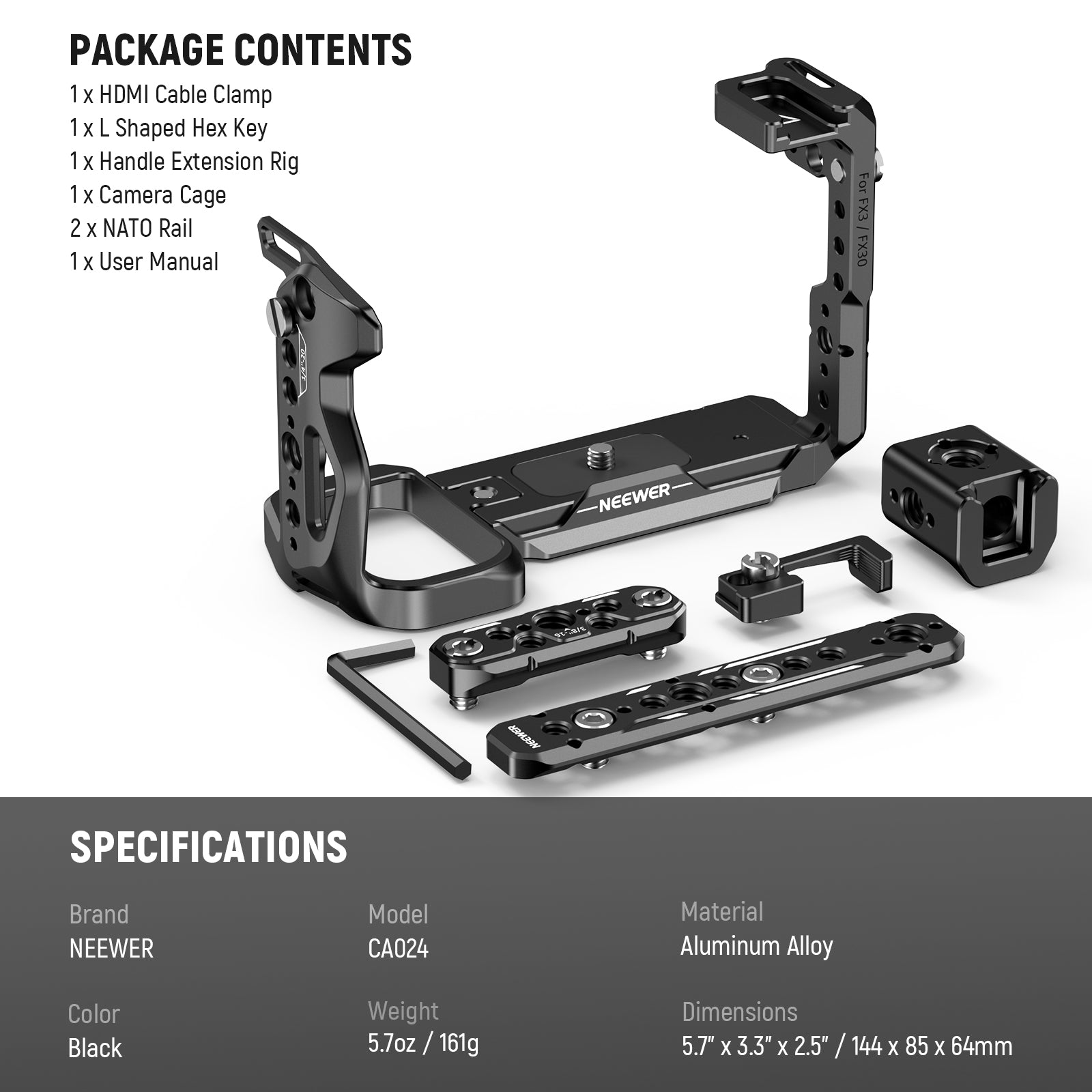NEEWER offers camera cages, which provide thorough protection and effortless handheld shooting experiences. In addition, our collection includes camera grips and camera baseplates. These camera cages and grips can keep all buttons fully accessible. They are lightweight yet reliable protection. Choose a professional and suitable camera cage, grip, or baseplate.