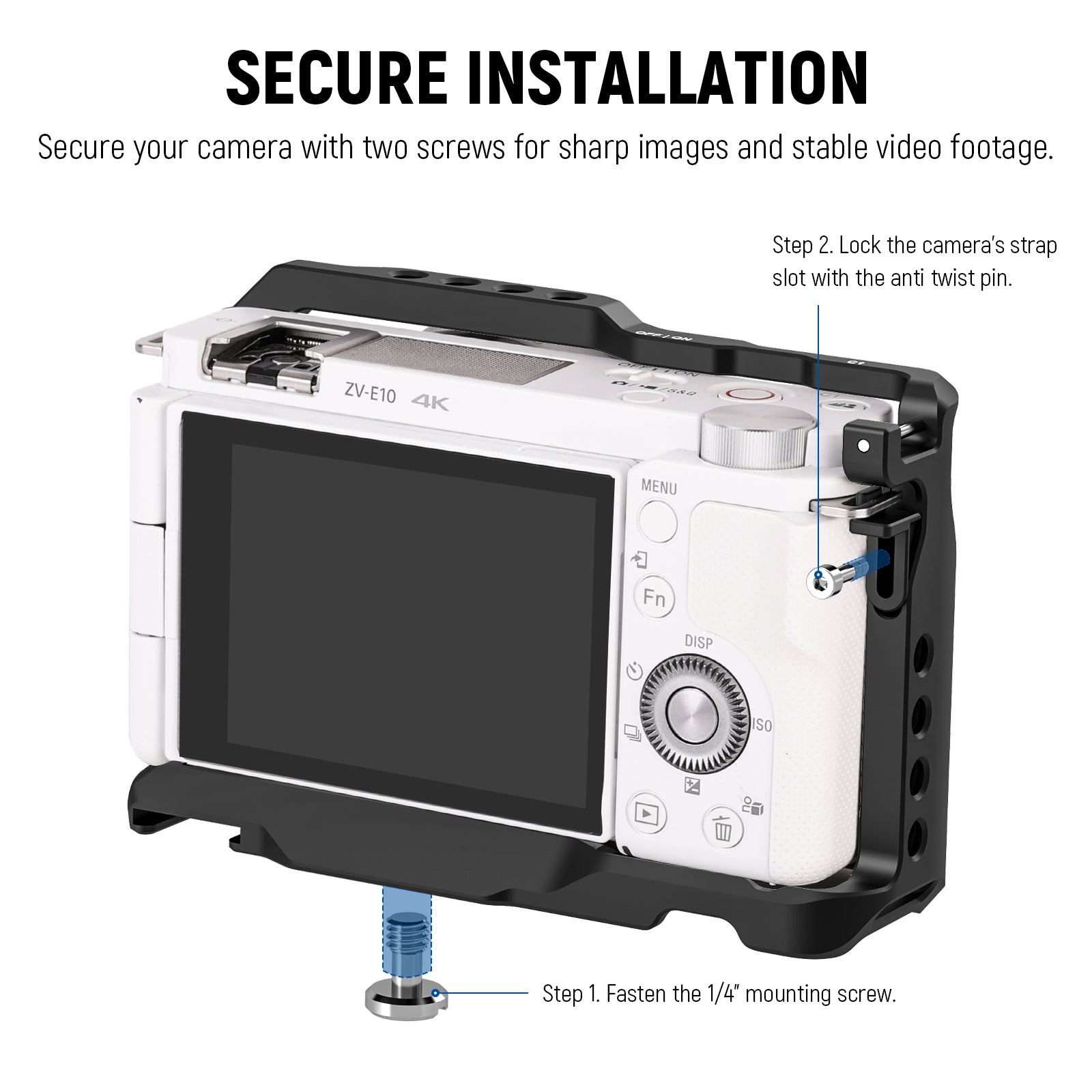 A camera cage is a protective and functional frame designed to enhance your camera, offering extra mounting points and accessories. You can think of it like a skeleton. It is built from metal (usually aluminum), so it can protect the body while making your rig customization possible.