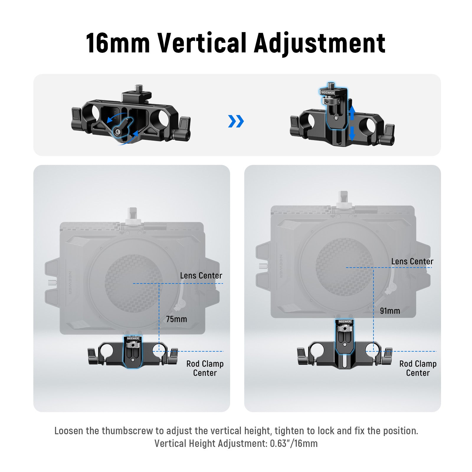 NEEWER PG013 Height Adjustable LWS 15mm Rod Clamp Matte Box Support