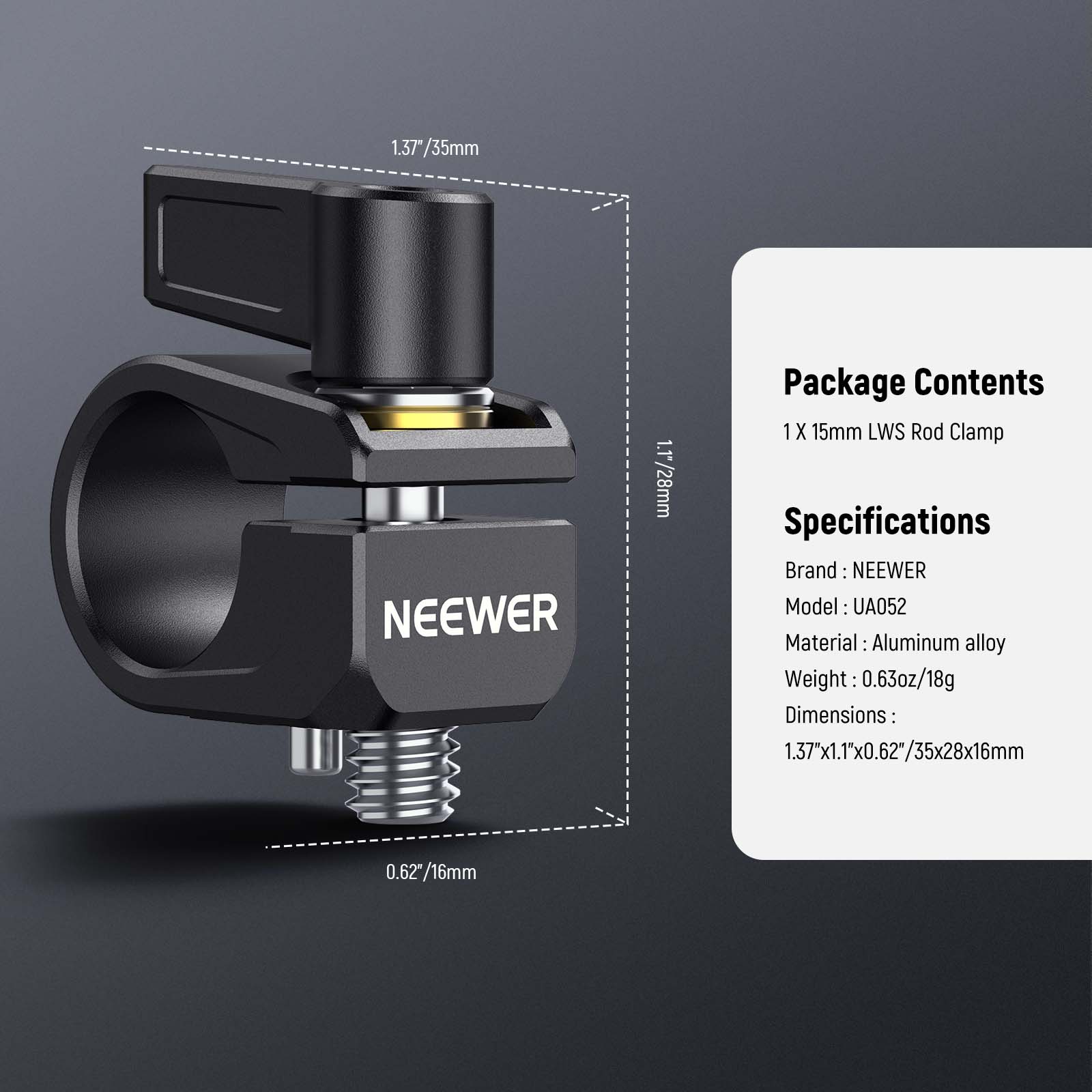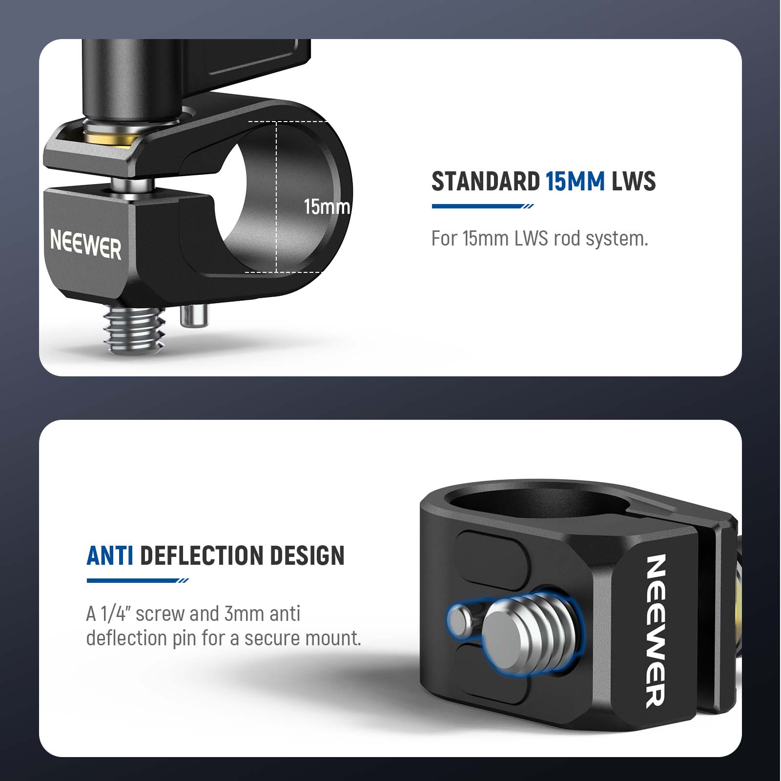 - Standard Single 15mm LWS Clamp- The standard 15mm rod clamp can work with NEEWER PG001 PG003 Follow Focus for precise focus adjustment, PG010 Follow Focus Palm Support for improved comfort, SR002 SR003 Carbon Fiber 15mm Rod (2 Packs), SR009 Aluminum 15mm Extension Rods (3 Pairs), and other 15mm LWS accessories (also compatible with SmallRig Follow Focus accessories compatible with Tilta shoulder rig accessories)