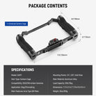 - Comfortable Dual Handles- Two contoured silicone handles provide a comfortable and firm grip for stable handheld shooting. The camera cage made of durable yet lightweight aluminum alloy is effortless to operate. Only 29oz/818g in weight, it can support a load of up to 33lb/15kg
