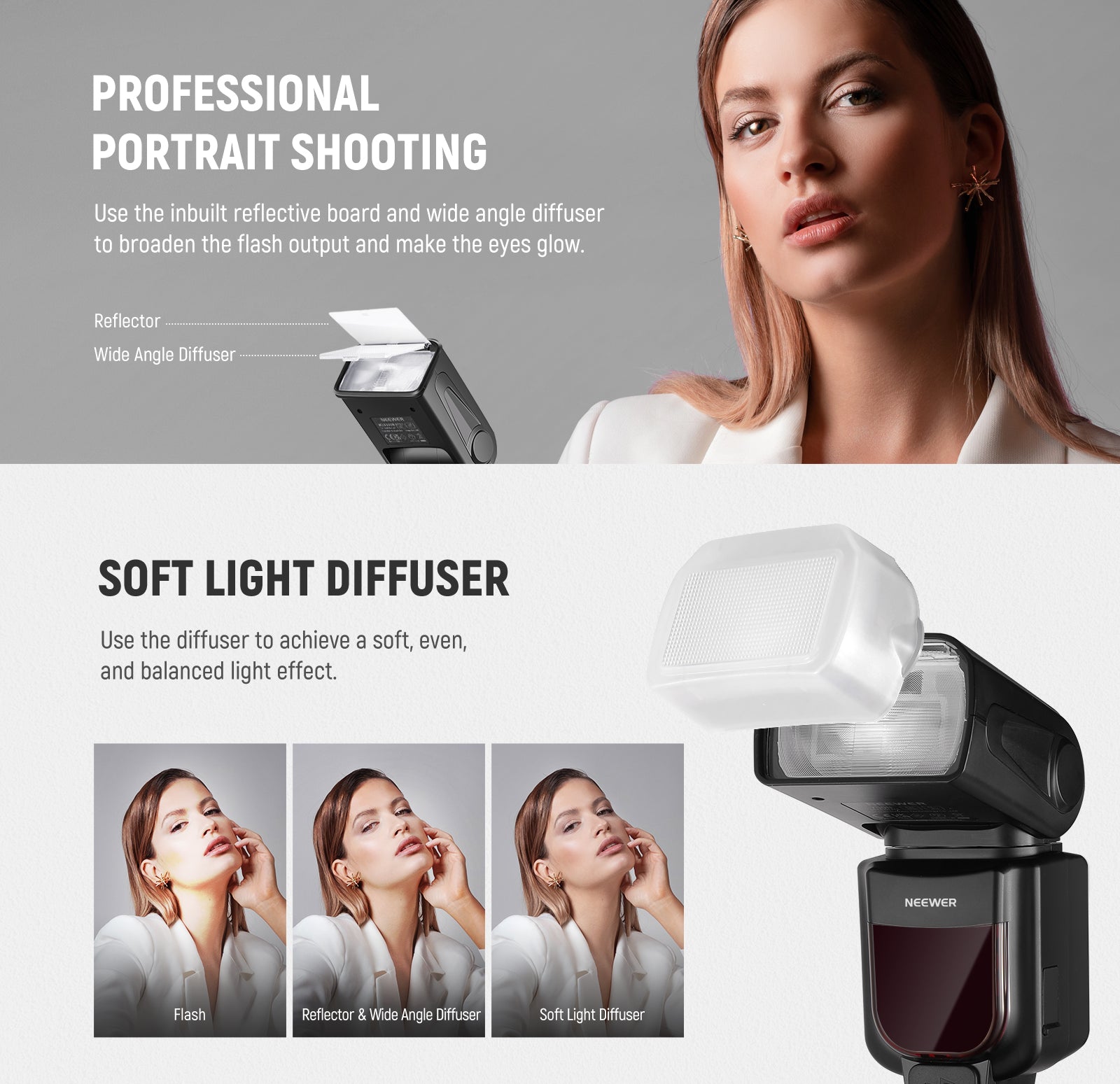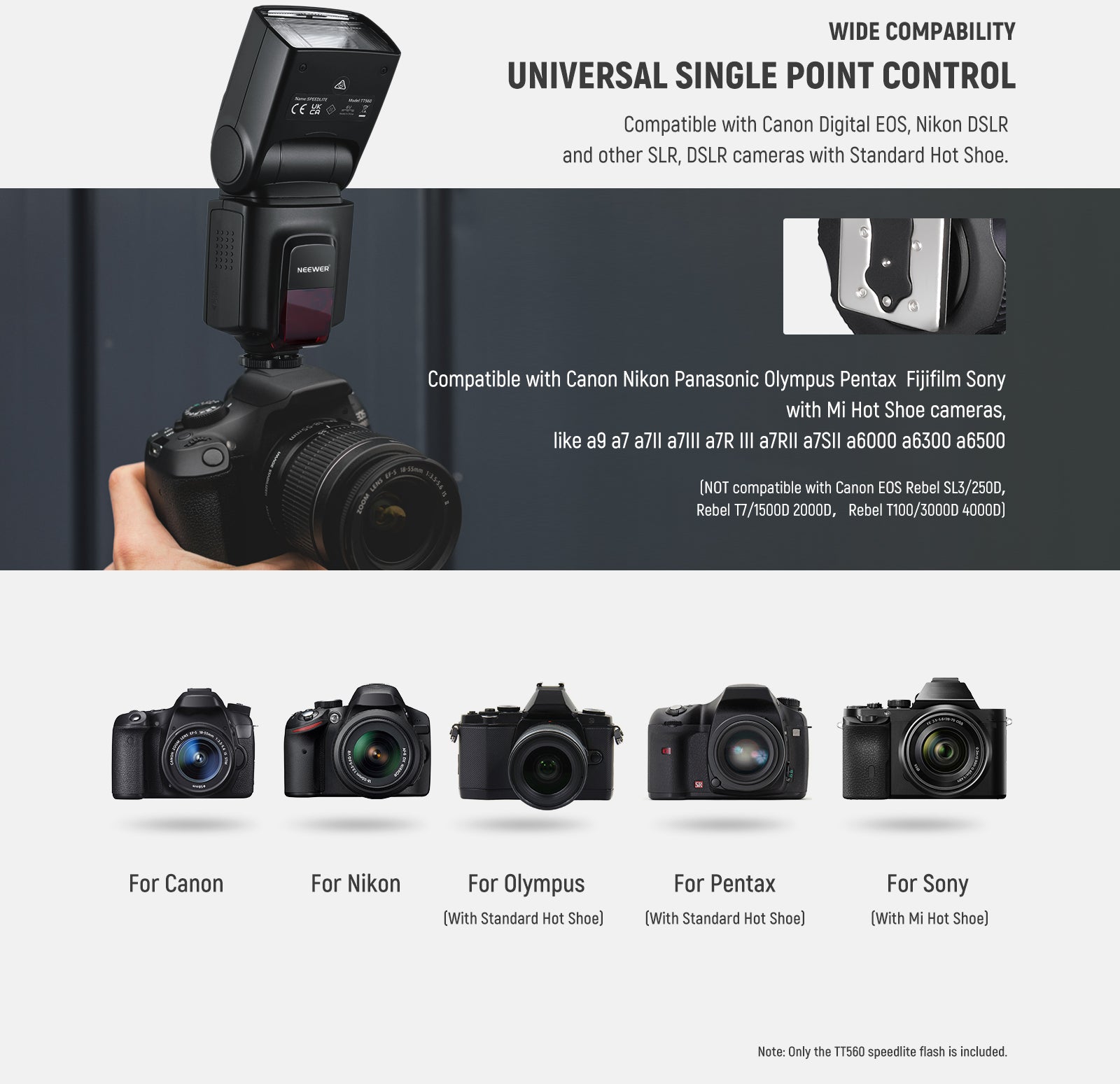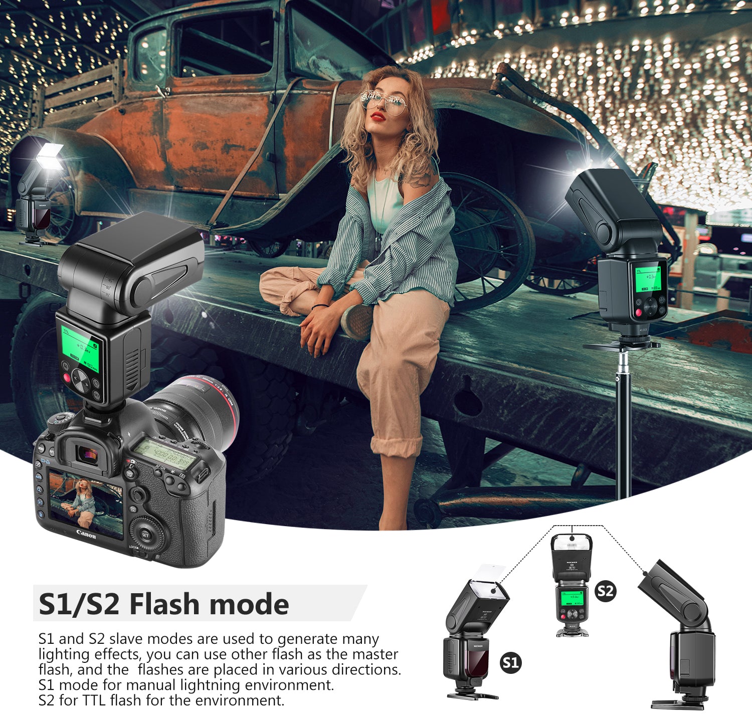 NEEWER offers a wide range of detachable camera flashes, including speedlite flashes compatible with Canon, Sony, and Nikon cameras. These camera flashes support TTL auto flash, making it easier to capture perfect shots effortlessly. Compact and portable, NEEWER speedlite flashes are ideal for photographers on the go. Choose a high-quality detachable camera flash to enhance your photography.