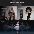 - Ultra Fine Power Control- The studio flash light for photography offers 1/256–1/1 flash output with 0.1EV precision and stable 6000K color temperature, delivering soft even glow via magnetic diffuser. Three LED modeling lamps offer 10 brightness levels for lighting preview