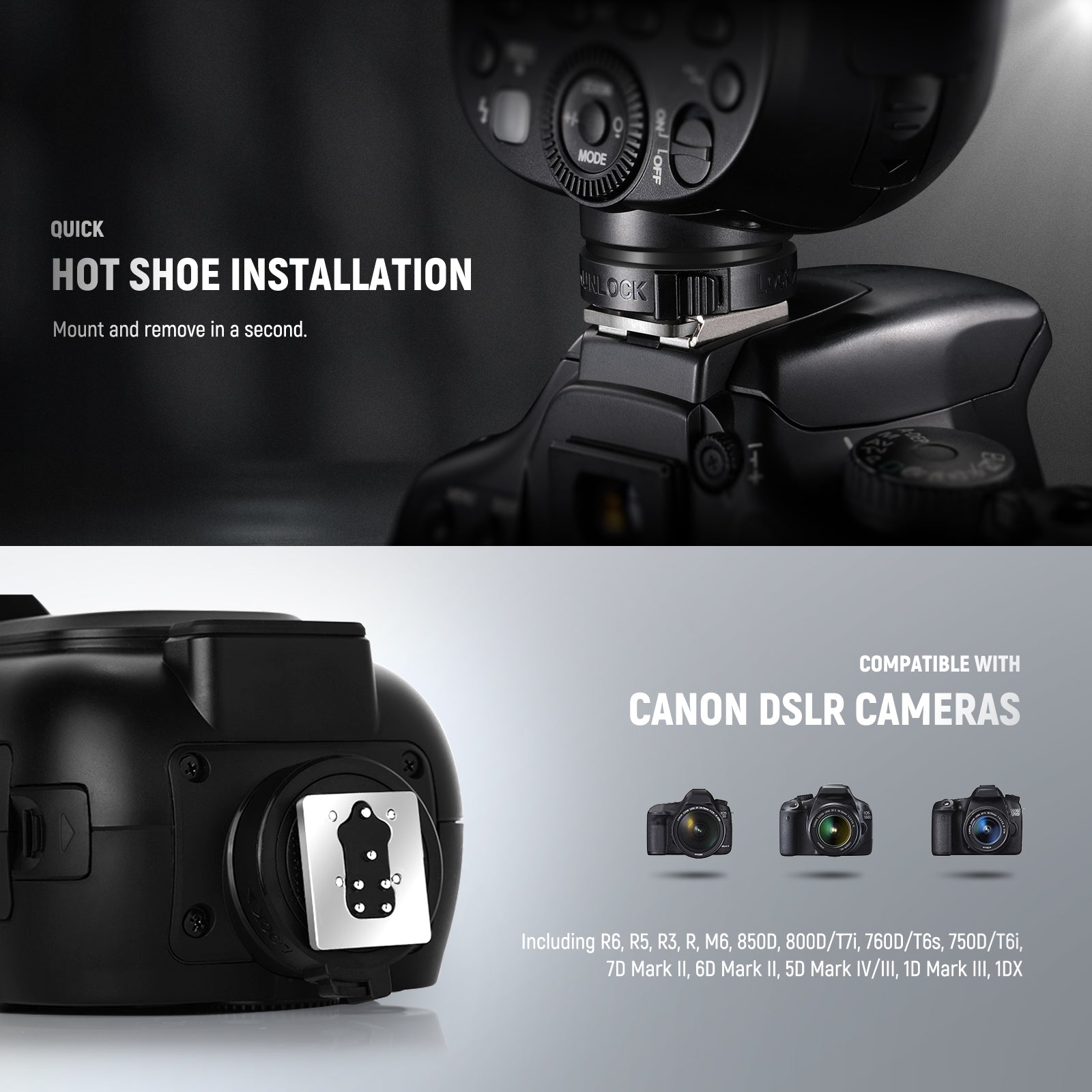NEEWER offers a wide range of detachable camera flashes, including speedlite flashes compatible with Canon, Sony, and Nikon cameras. These camera flashes support TTL auto flash, making it easier to capture perfect shots effortlessly. Compact and portable, NEEWER speedlite flashes are ideal for photographers on the go. Choose a high-quality detachable camera flash to enhance your photography.