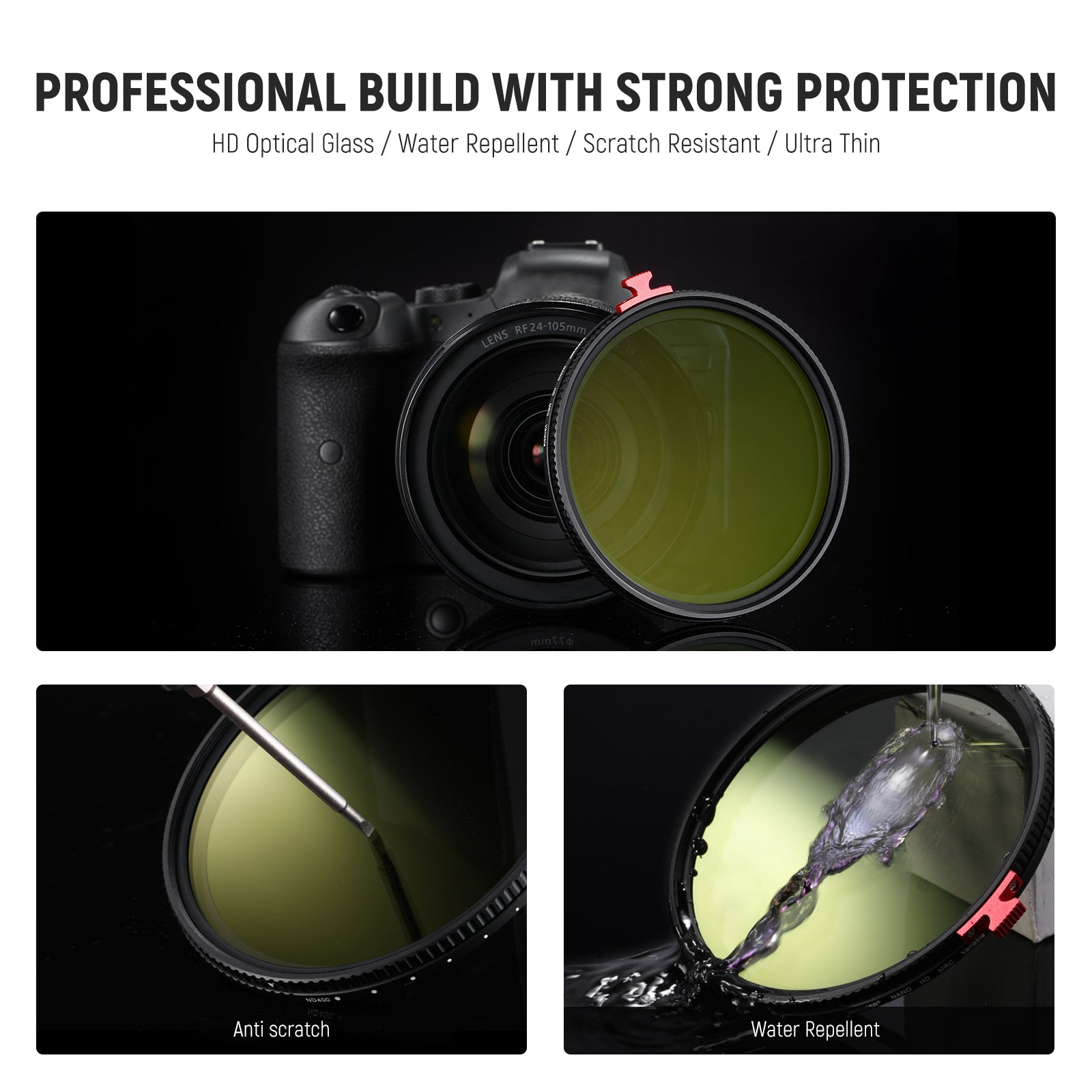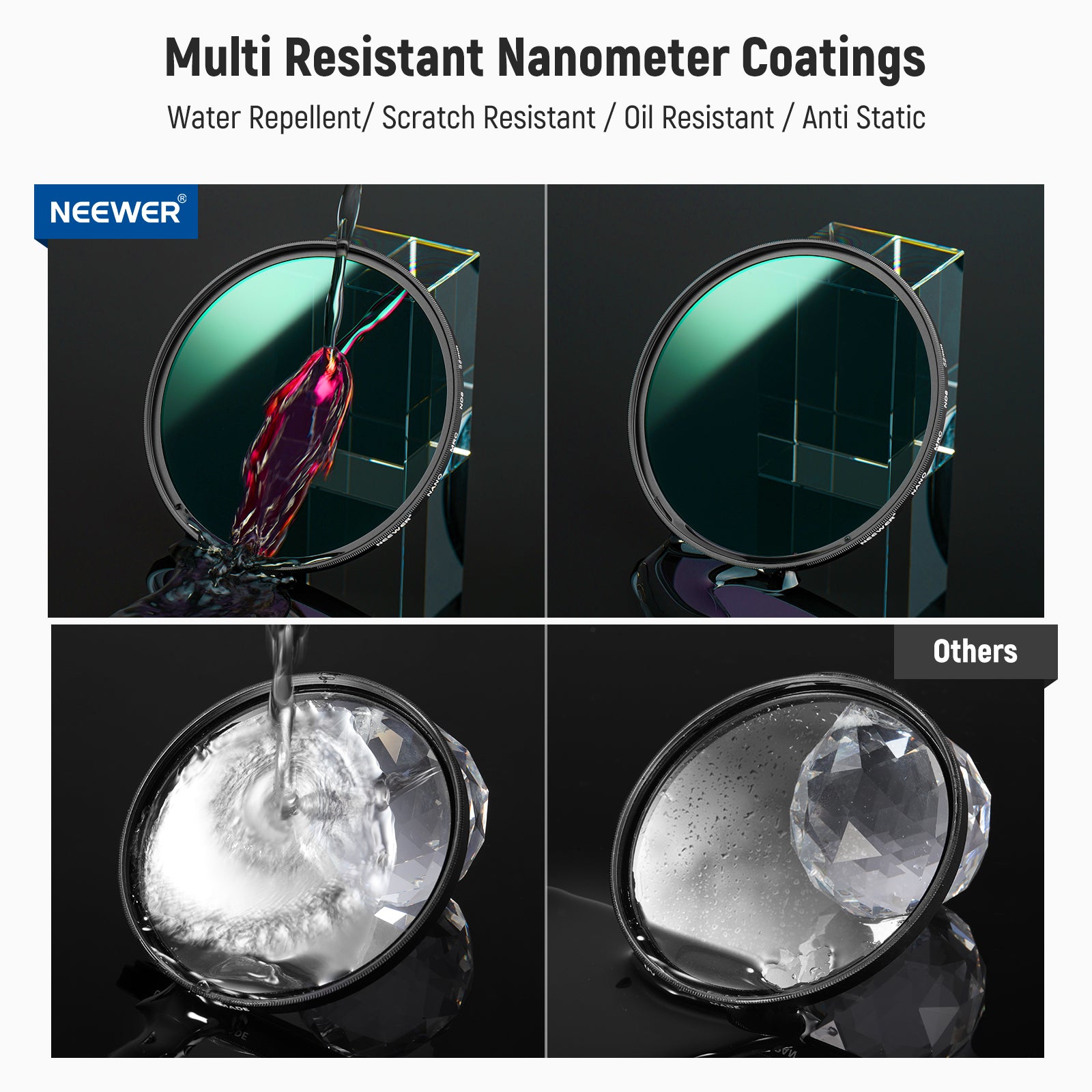 NEEWER camera filters offer a range of options, including ND, CPL, UV protection filters, and more. These lens filters enable you to capture breathtaking images and videos with precise lighting control and accurate color reproduction. Additionally, UV protection filters help protect your lens from damage. Choose a high-quality camera lens filter to elevate your photography.