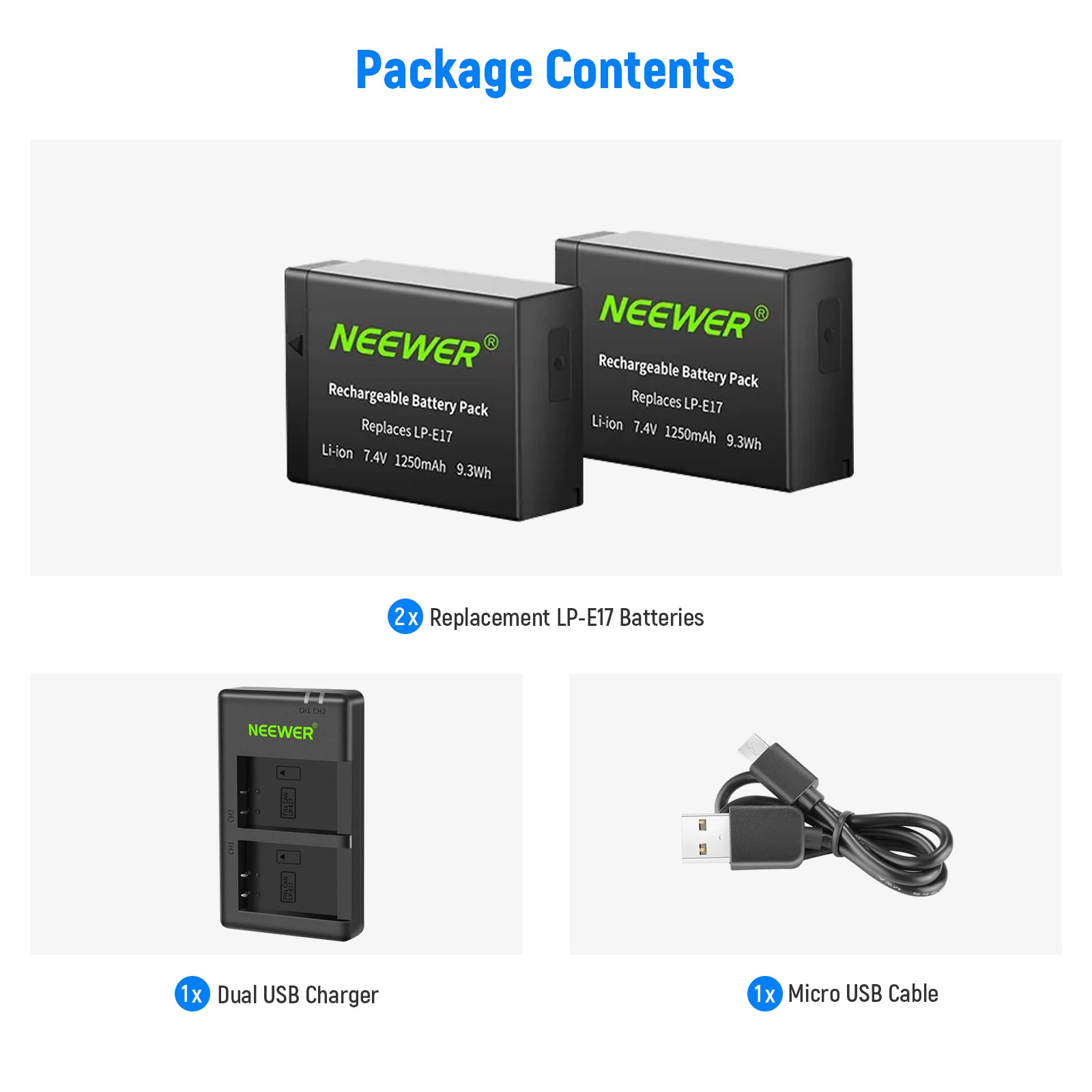 NEEWER 2-Pack LP-E17 Replacement Battery Charger Set for Canon