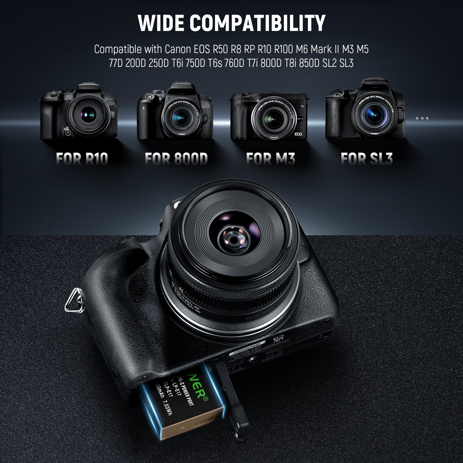 • Replacement Battery for Canon LP-E17- This LP-E17 Battery is compatible with Canon EOS R50 R8 RP R10 R100M6 Mark II M3 M5 77D 200D 250D T6i 750D T6s 760D T7i 800D T8i 850D SL2 SL3