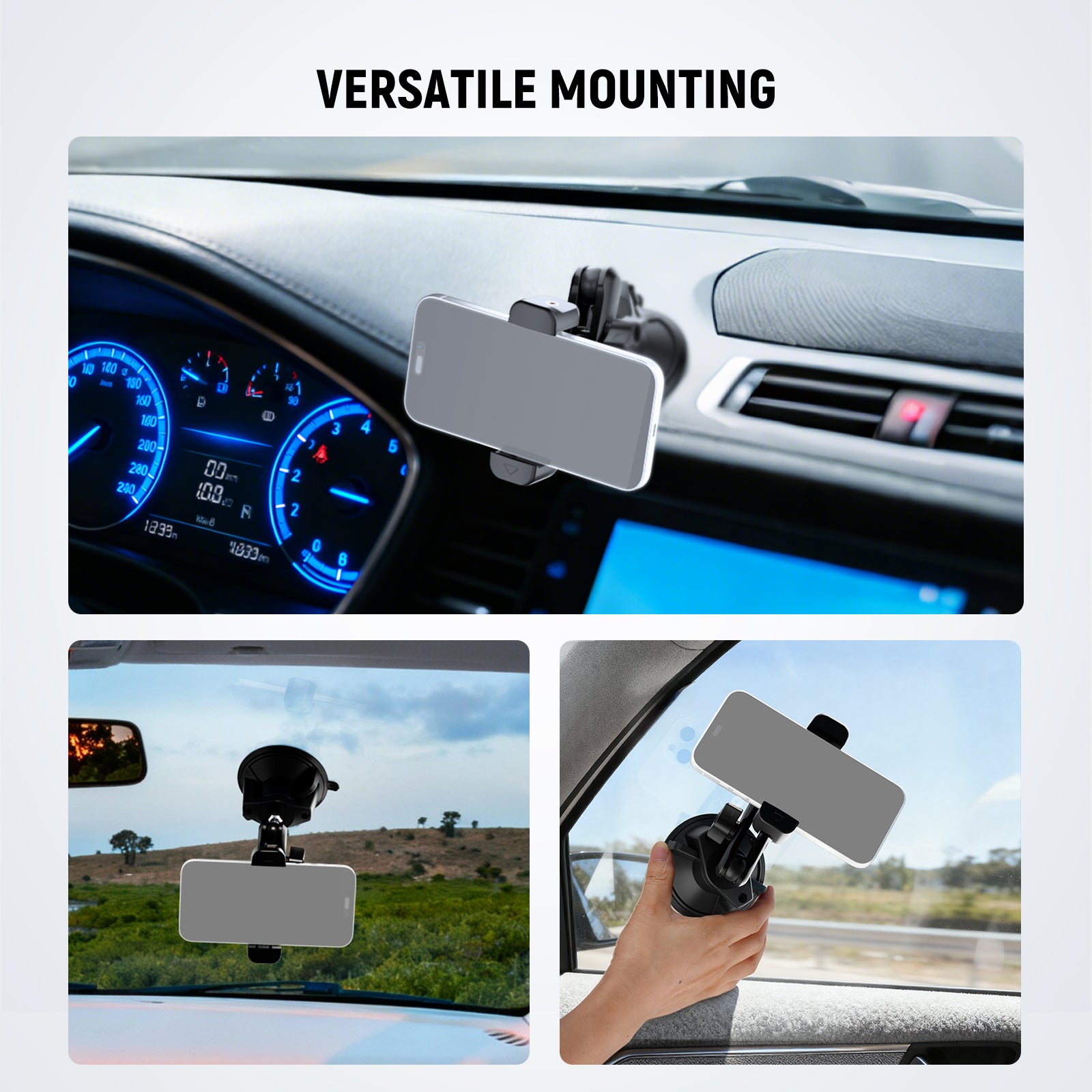 - Universal Compatibility- This suction holder stand mount fits mainstream cellphones, compatible with iPhone 16 Pro Max Plus 15/14/13 Samsung Galaxy S25 Ultra Android, etc. For POV travel vlog, navigation, calls, phone camera video recording as women men car accessories