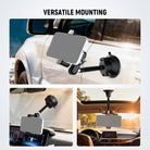 - Versatile Mounting- The strong suction cup phone holder mount holds on the windshield, window, hood, dash board, marble, smooth dashboard/metal surface, for a car, truck, van, ATV, UTV or other vehicles. A simple turn of the base knob secures it in place