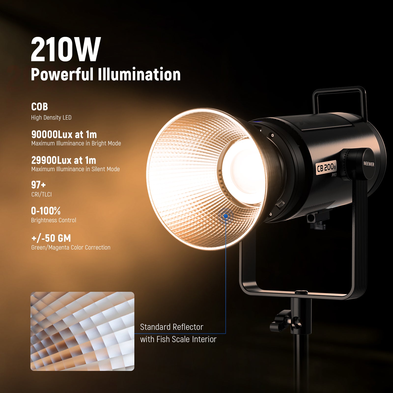 A COB light is a single, powerful LED chip that emits a focused, intense beam of light. It acts like a mini sun, which makes it ideal for modifiers and directional control.