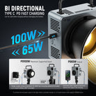 • 3 Fan Modes & Type C PD Fast Charging- The cooling fan has 3 modes: Mute (5W)/Regular (60W)/Booster (80W). Mute mode lasts approx. 1h 34min, Regular mode lasts 1h 14min at 100% brightness, Booster mode requires a PD100W adapter (NOT Included). The type C bidirectional port supports max PD 100W input and PD 60W output, allowing for a full charge in 2 hours when powered by a PD 60W or higher input. You can use the light while charging without damaging the battery