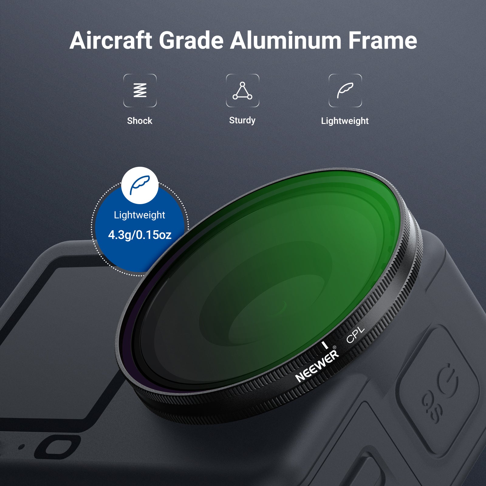 NEEWER offers DJI lens filters that are ideal for professional aerial photography and videography. With the help of these DJI camera filters, you can capture sharp photos in bright lighting and create motion blur in dynamic scenes. Choose a DJI lens filter that is compatible with your action camera model.