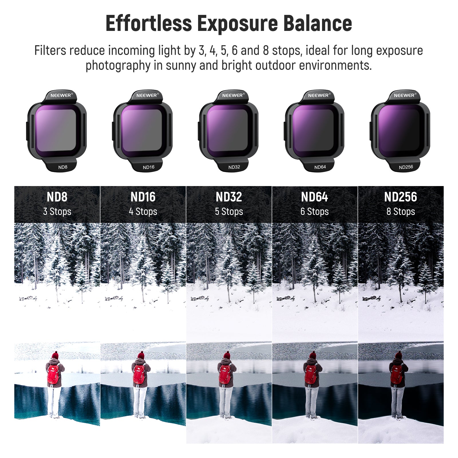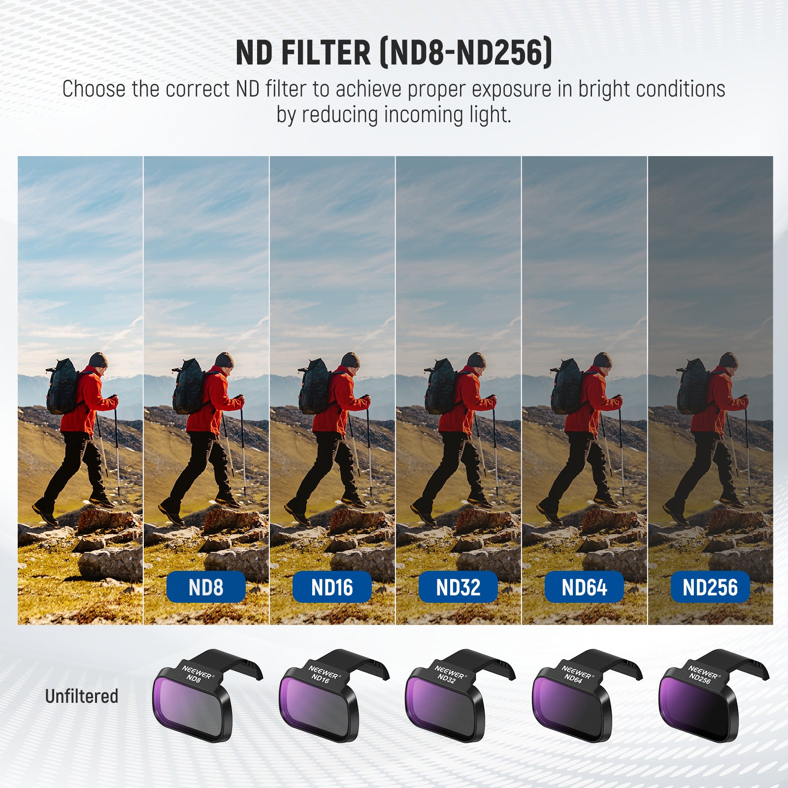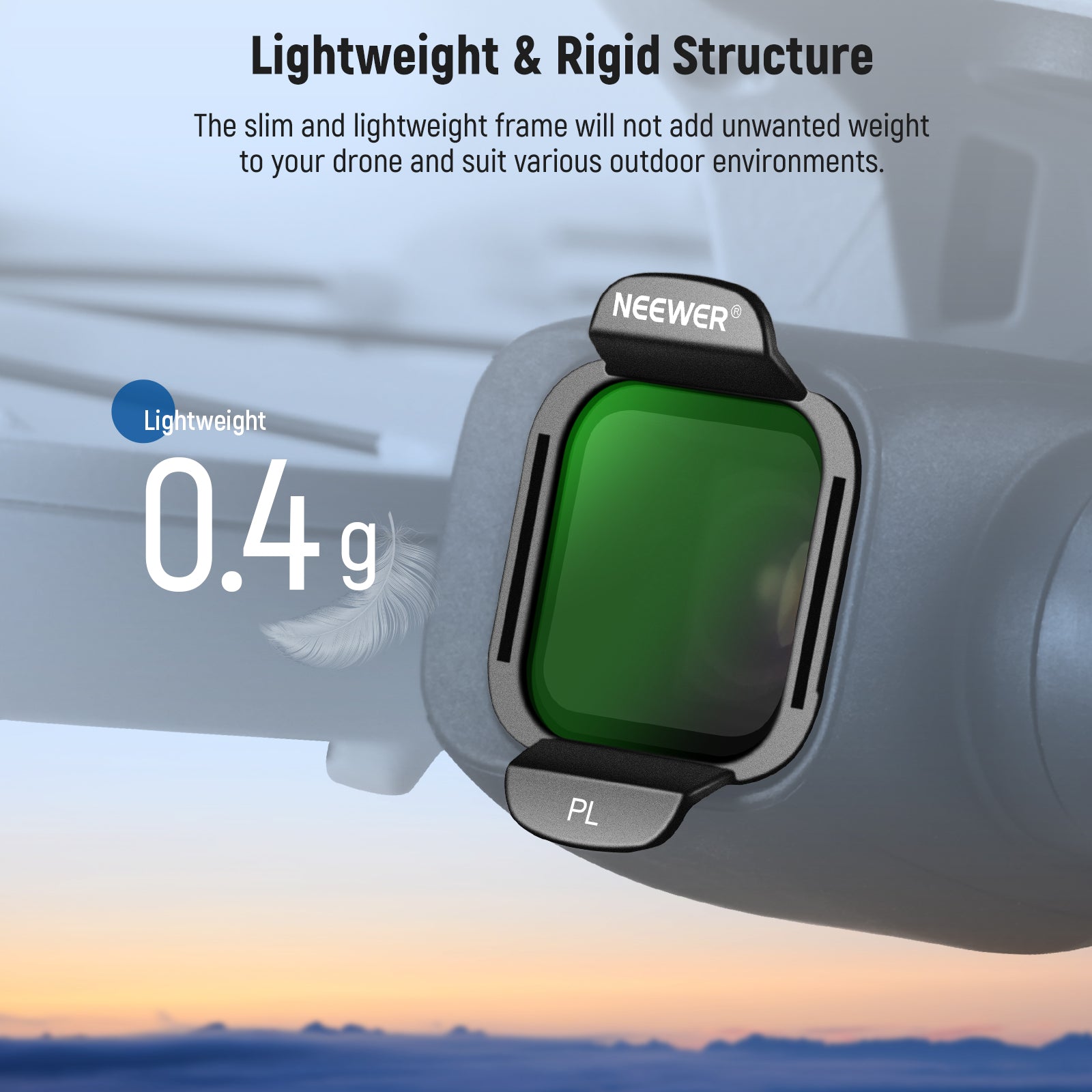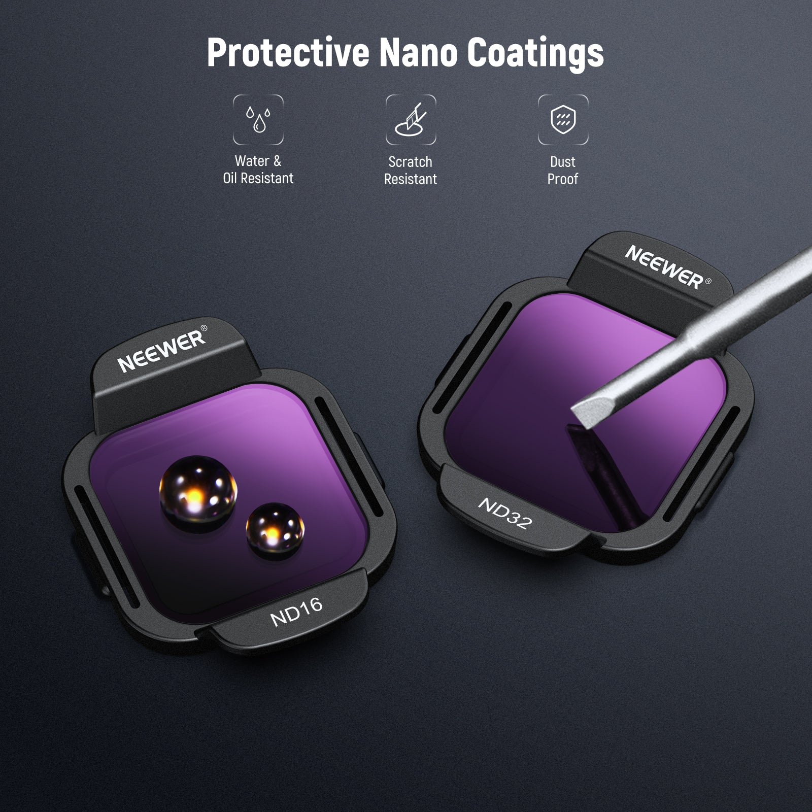 NEEWER offers DJI lens filters that are ideal for professional aerial photography and videography. With the help of these DJI camera filters, you can capture sharp photos in bright lighting and create motion blur in dynamic scenes. Choose a DJI lens filter that is compatible with your action camera model.