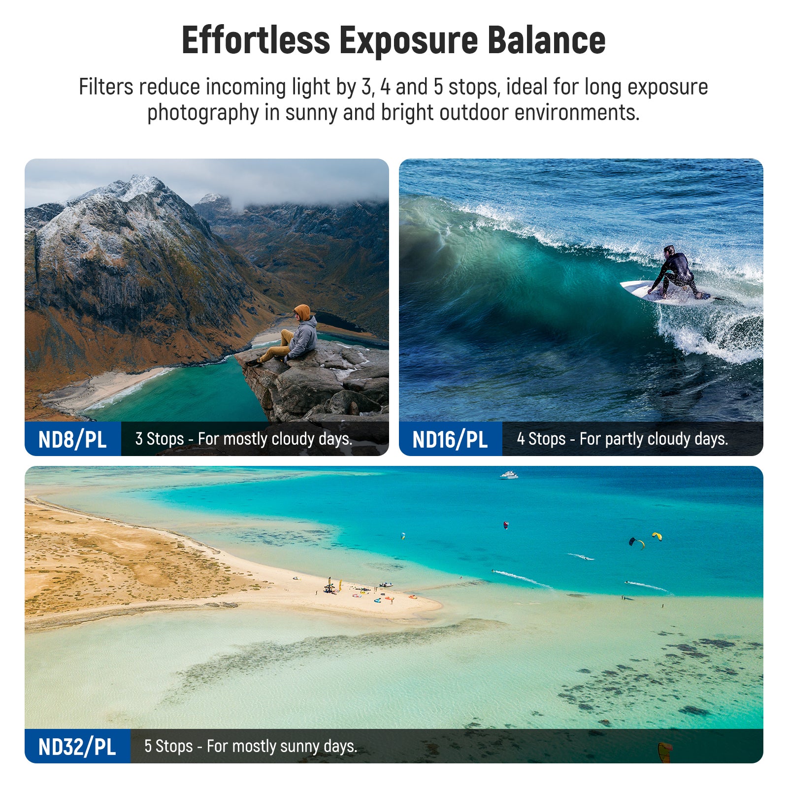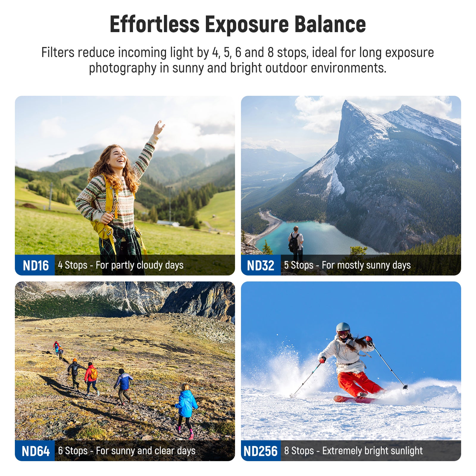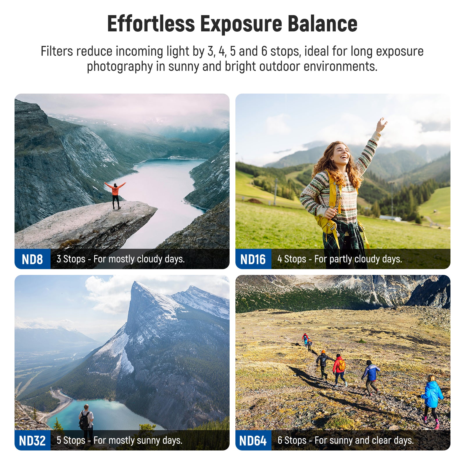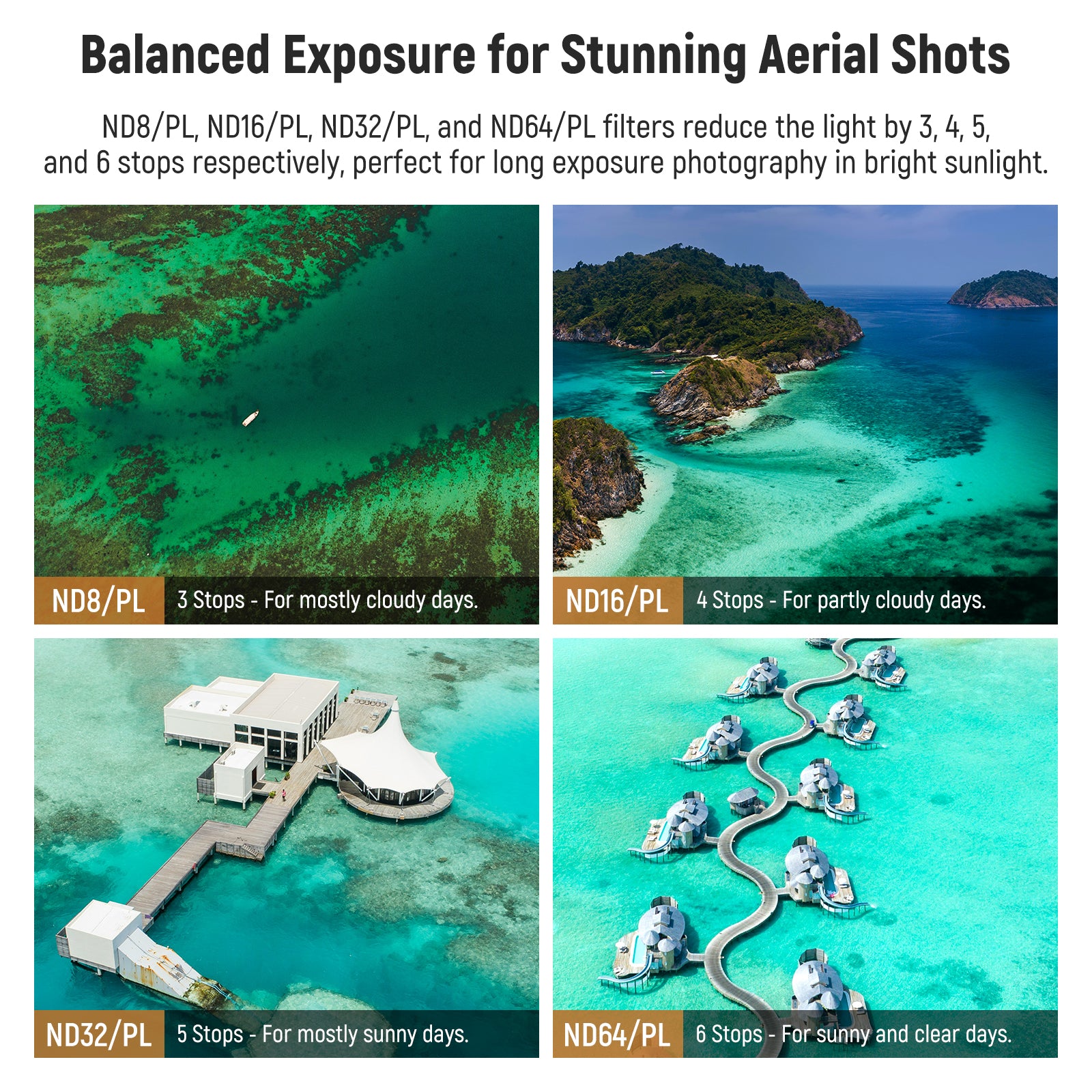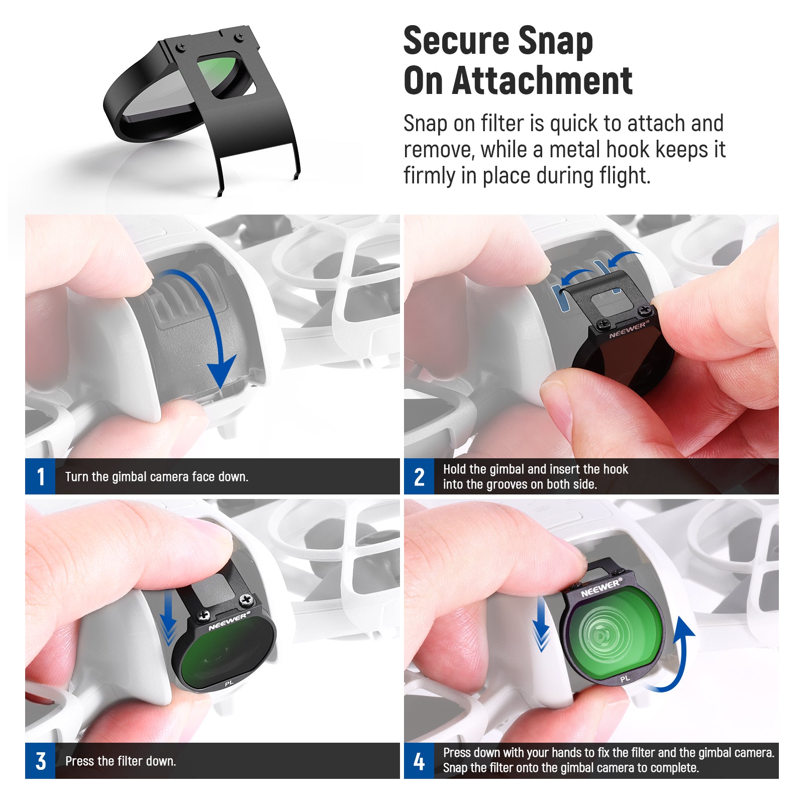NEEWER offers DJI lens filters that are ideal for professional aerial photography and videography. With the help of these DJI camera filters, you can capture sharp photos in bright lighting and create motion blur in dynamic scenes. Choose a DJI lens filter that is compatible with your action camera model.