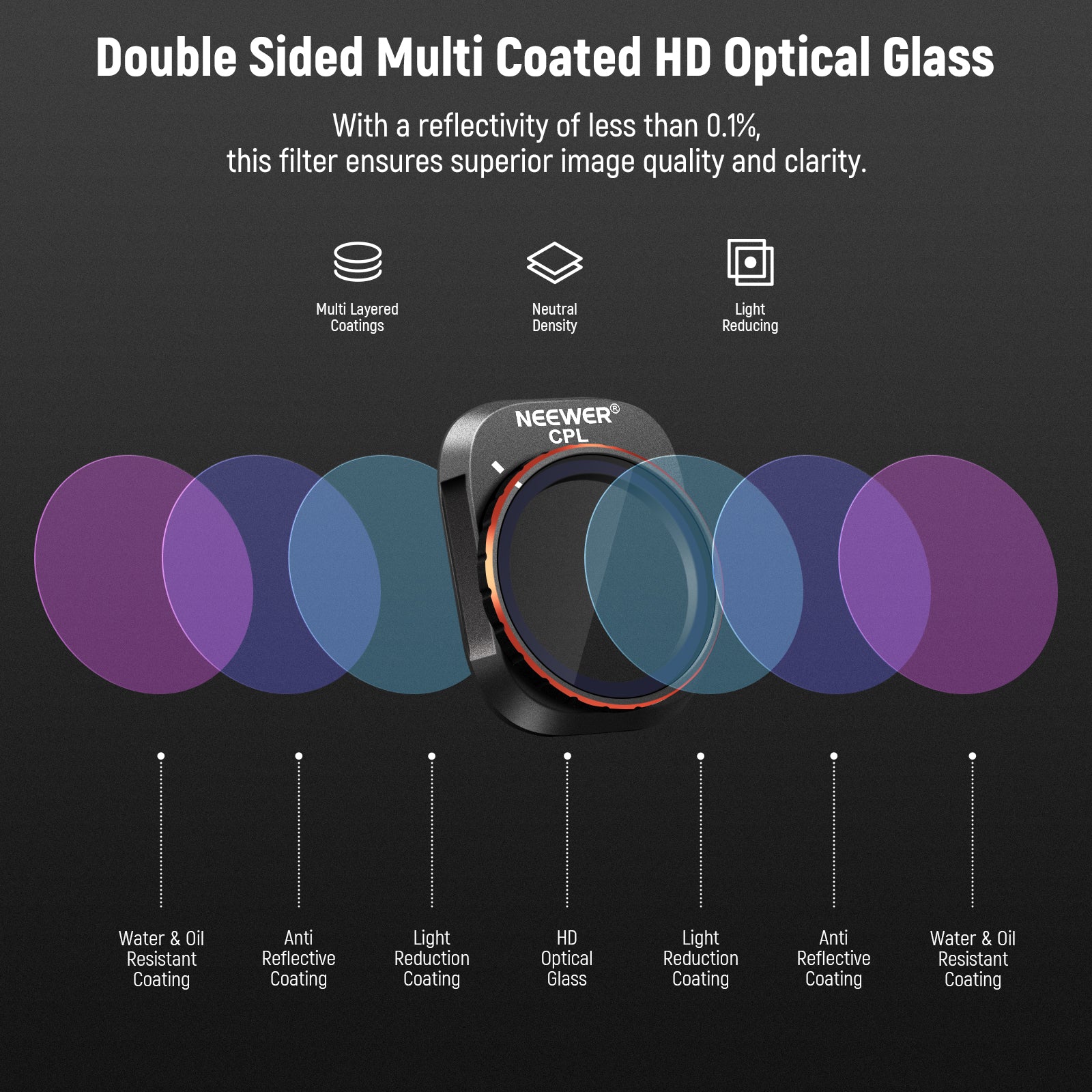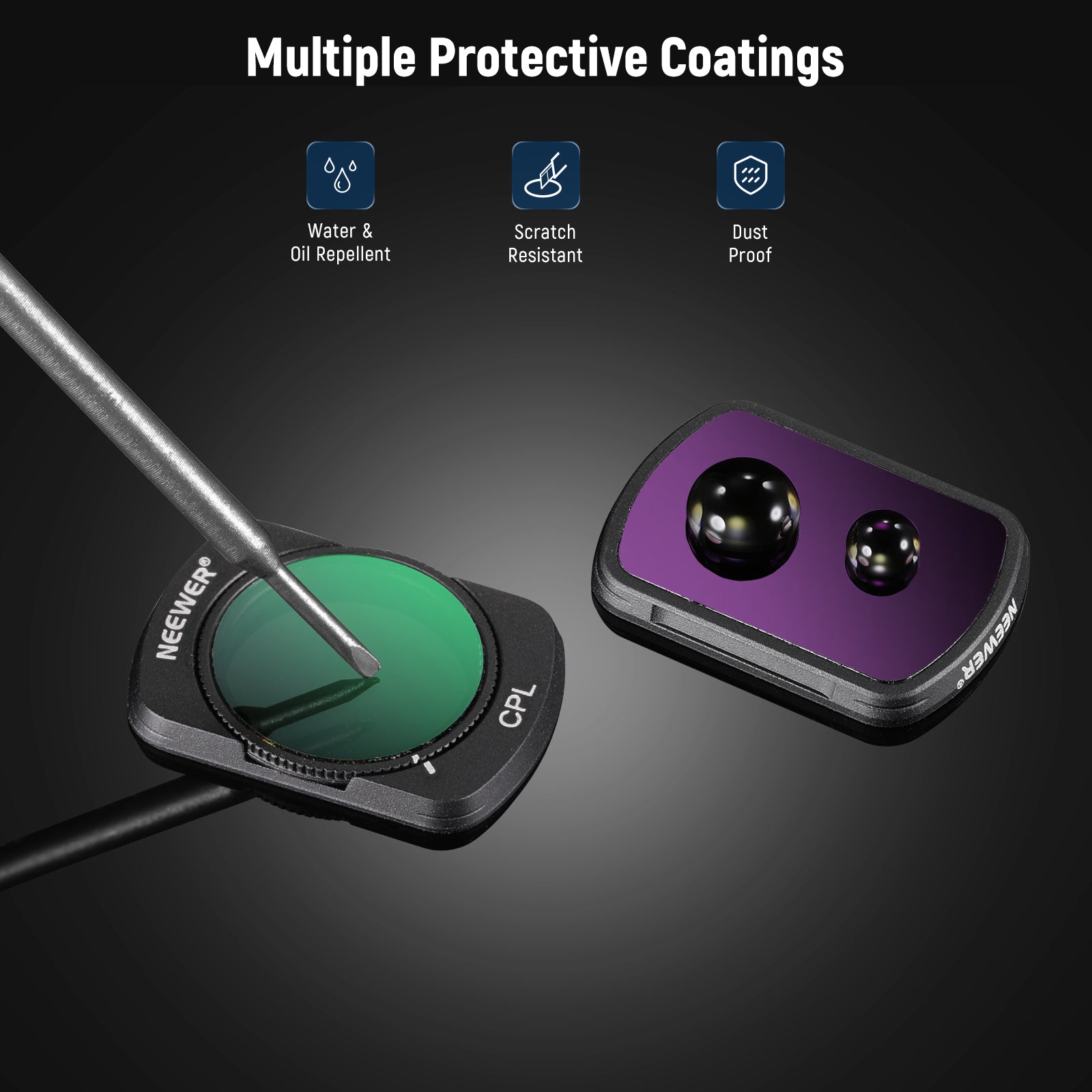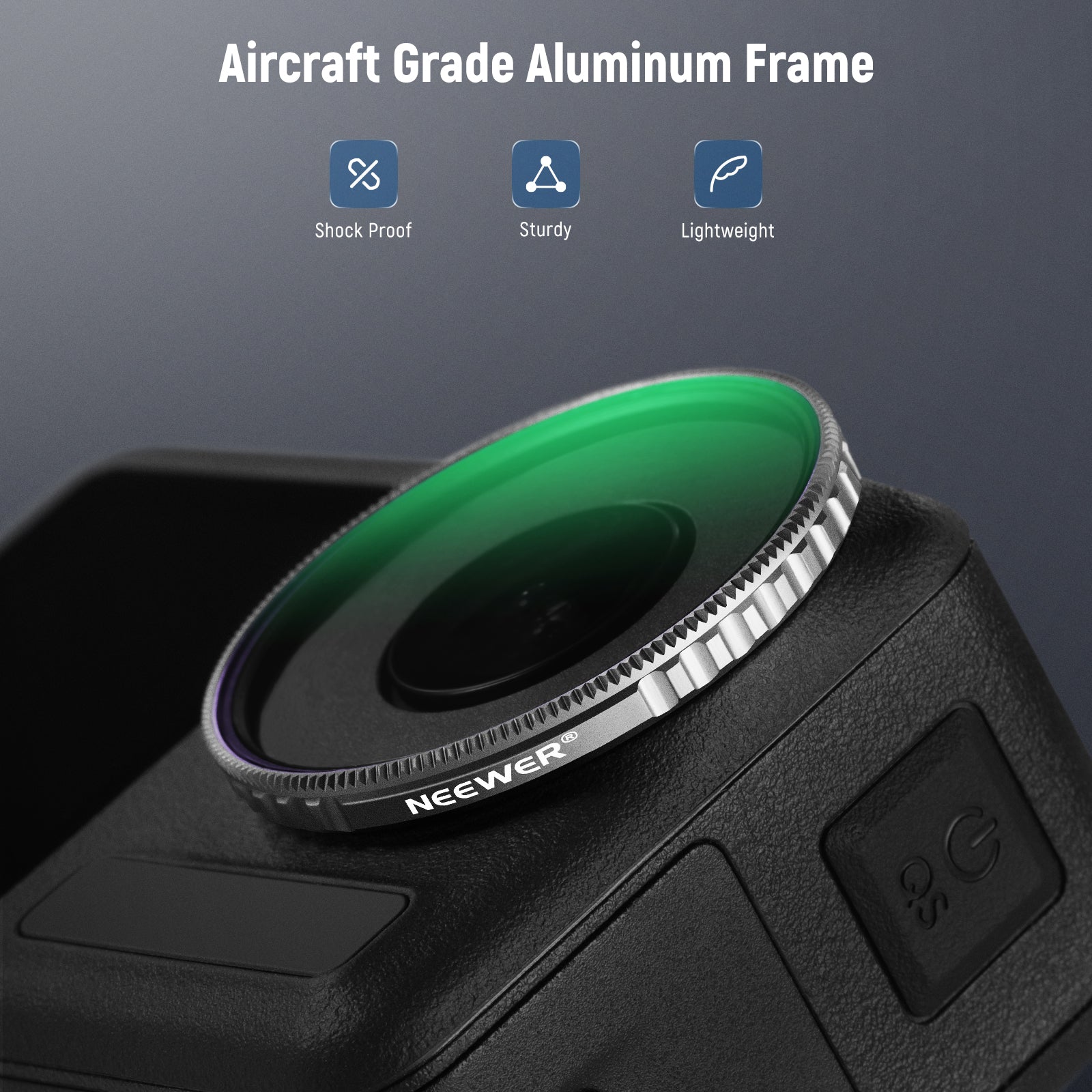 NEEWER offers DJI lens filters that are ideal for professional aerial photography and videography. With the help of these DJI camera filters, you can capture sharp photos in bright lighting and create motion blur in dynamic scenes. Choose a DJI lens filter that is compatible with your action camera model.