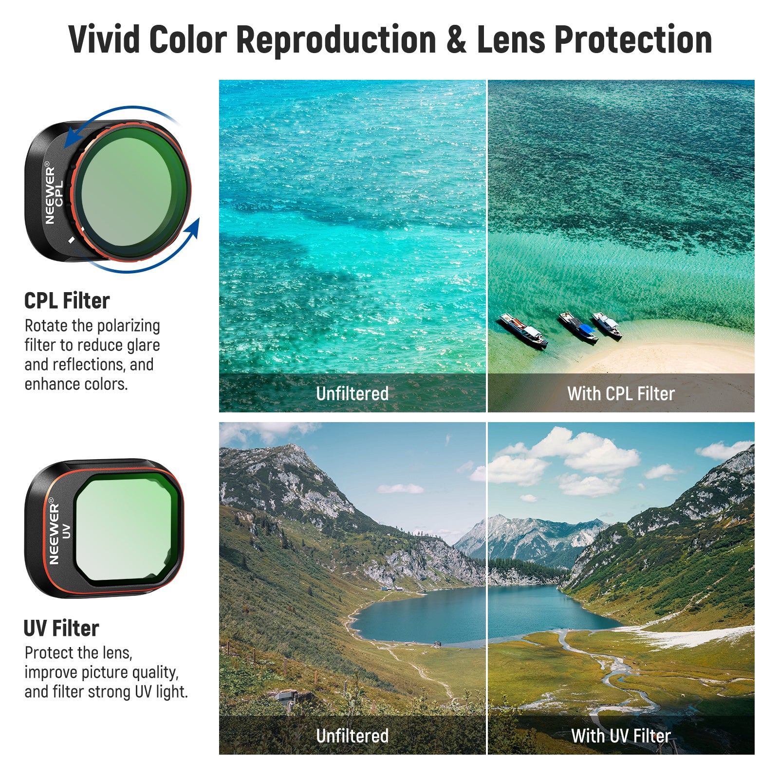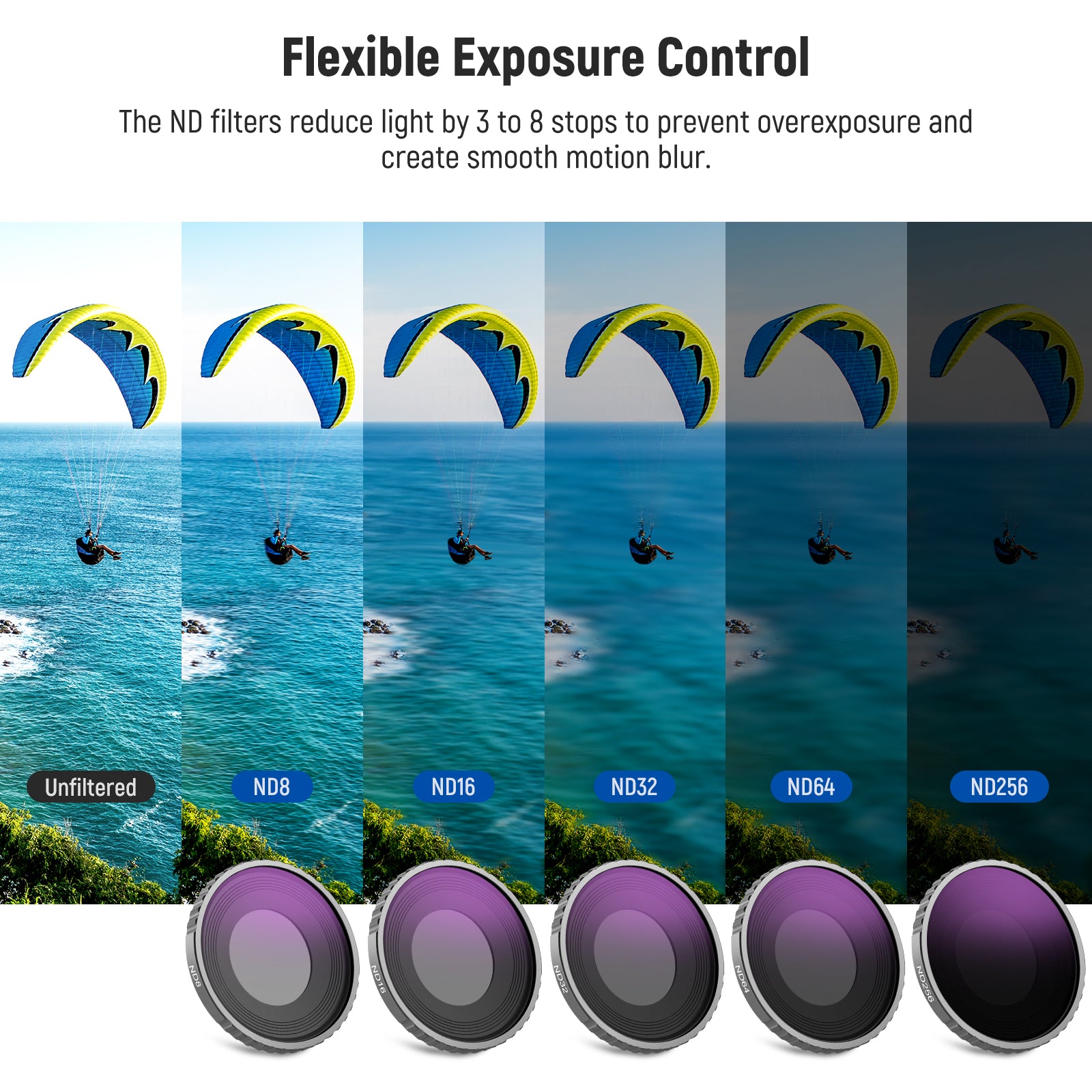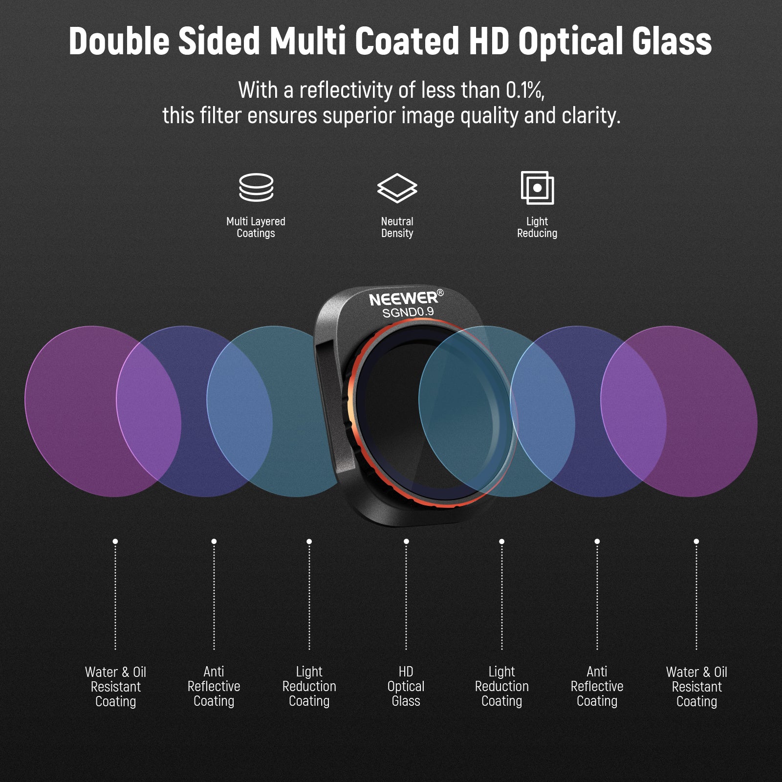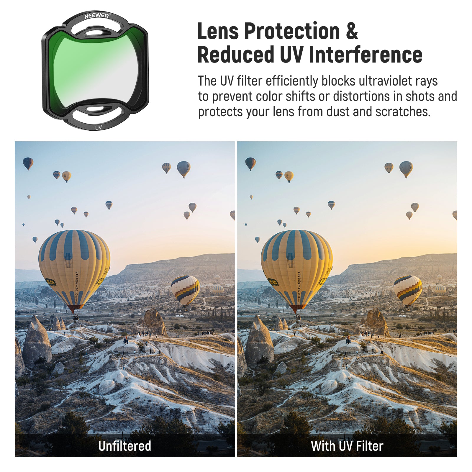 NEEWER offers DJI lens filters that are ideal for professional aerial photography and videography. With the help of these DJI camera filters, you can capture sharp photos in bright lighting and create motion blur in dynamic scenes. Choose a DJI lens filter that is compatible with your action camera model.
