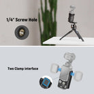 • Upgraded with 1/4" Screw Hole & Two Clamp Interface- Built with a standard 1/4" threaded hole on the stand base and a two-clamp interface on the back, the Pocket 3 cage holder easily connects to tripods, selfie stick, table stands, chest strap mount, backpack clip, bicycle bracket and other accessories, offering many more flexible and stable mounting options for different shooting scenarios