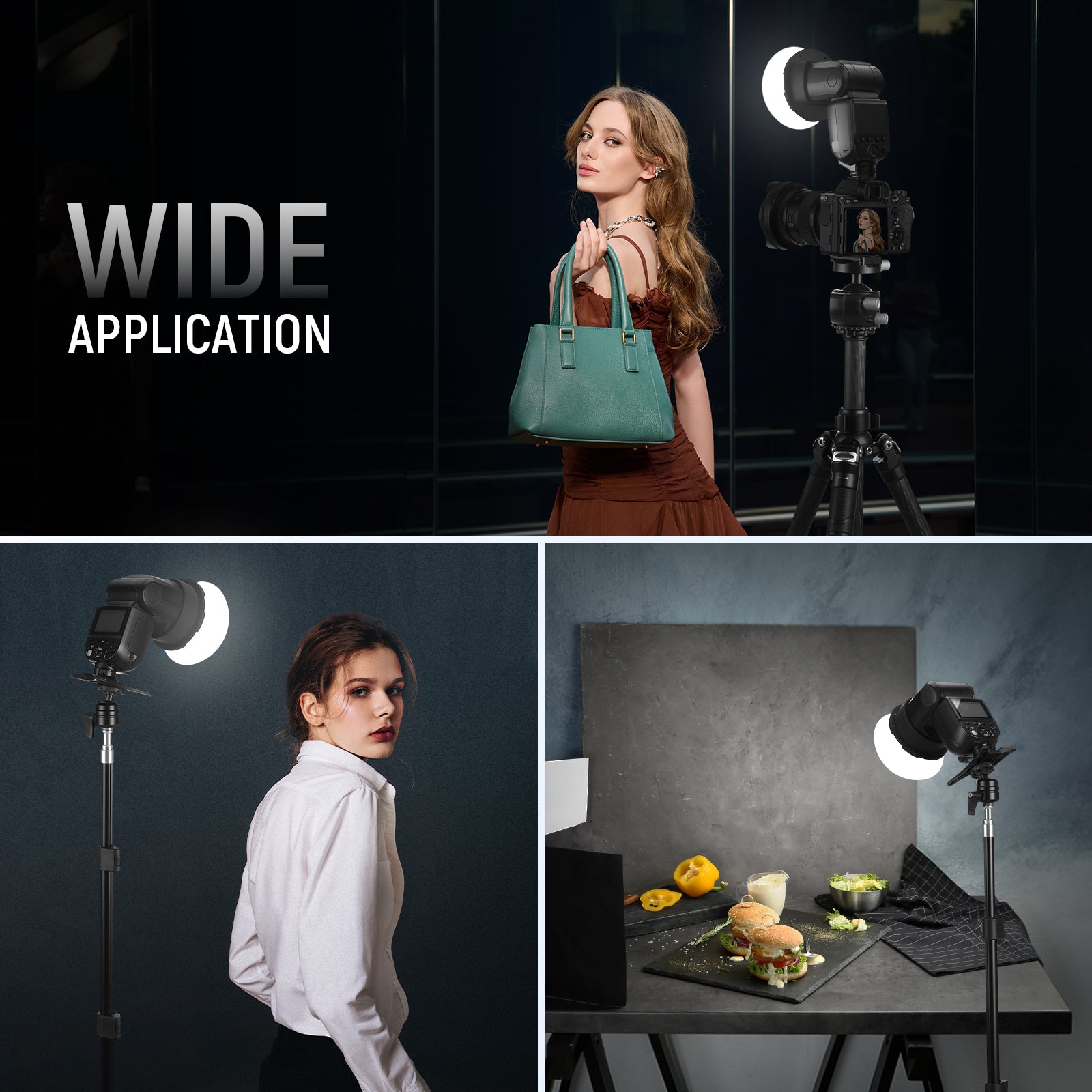 NEEWER offers a wide range of flash accessories designed to enhance your photography results. Our collection includes brackets, head adapter rings, soft mini diffusers, and more. Additionally, the NEEWER flash accessory kit is essential for precise control over your flash lighting, helping you achieve soft, flattering effects. Choose the good flash accessories to meet your photography needs.