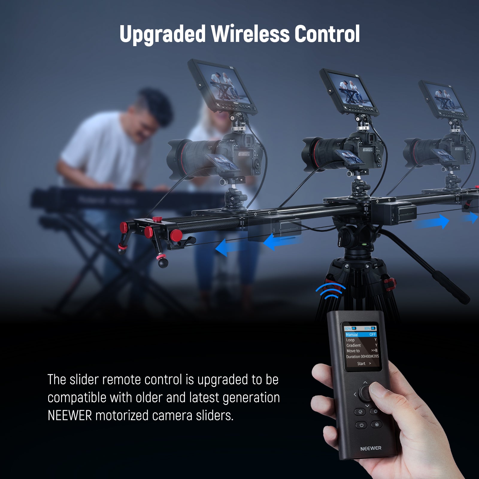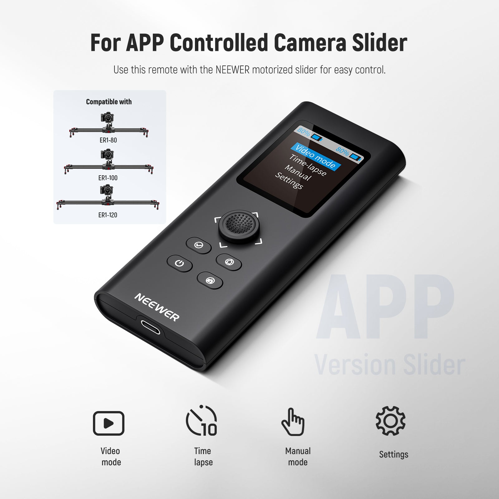 - Upgraded Wireless Control- The slider remote is upgraded to be compatible with both the older generation and the newest generation of NEEWER Motorized camera slider, including the VS-80WC/VS-100WC 2.4G motorized camera slider and the ER1 series App-controlled motorized slider (ER1-120, ER1-100, and ER1-80). Get one now to pair with your NEEWER slider to achieve easy control