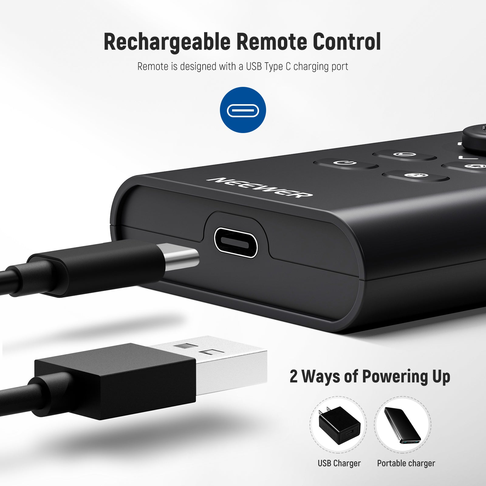 - Rechargeable Remote Control- Unlike traditional remotes that are powered by disposable batteries, this upgraded slider remote is designed with a USB Type C charging port. Quickly charge the remote by connecting it to a wall charger or a portable charger with DC5V/1A output