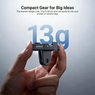 - Compact Gear for Big Ideas- Weighing only 13 g (0.46 oz), this mini mount slips easily into your pocket or camera bag. Essential and must have accessory for content creators and influencers, ideal for travel, vlogging, and on the go filming