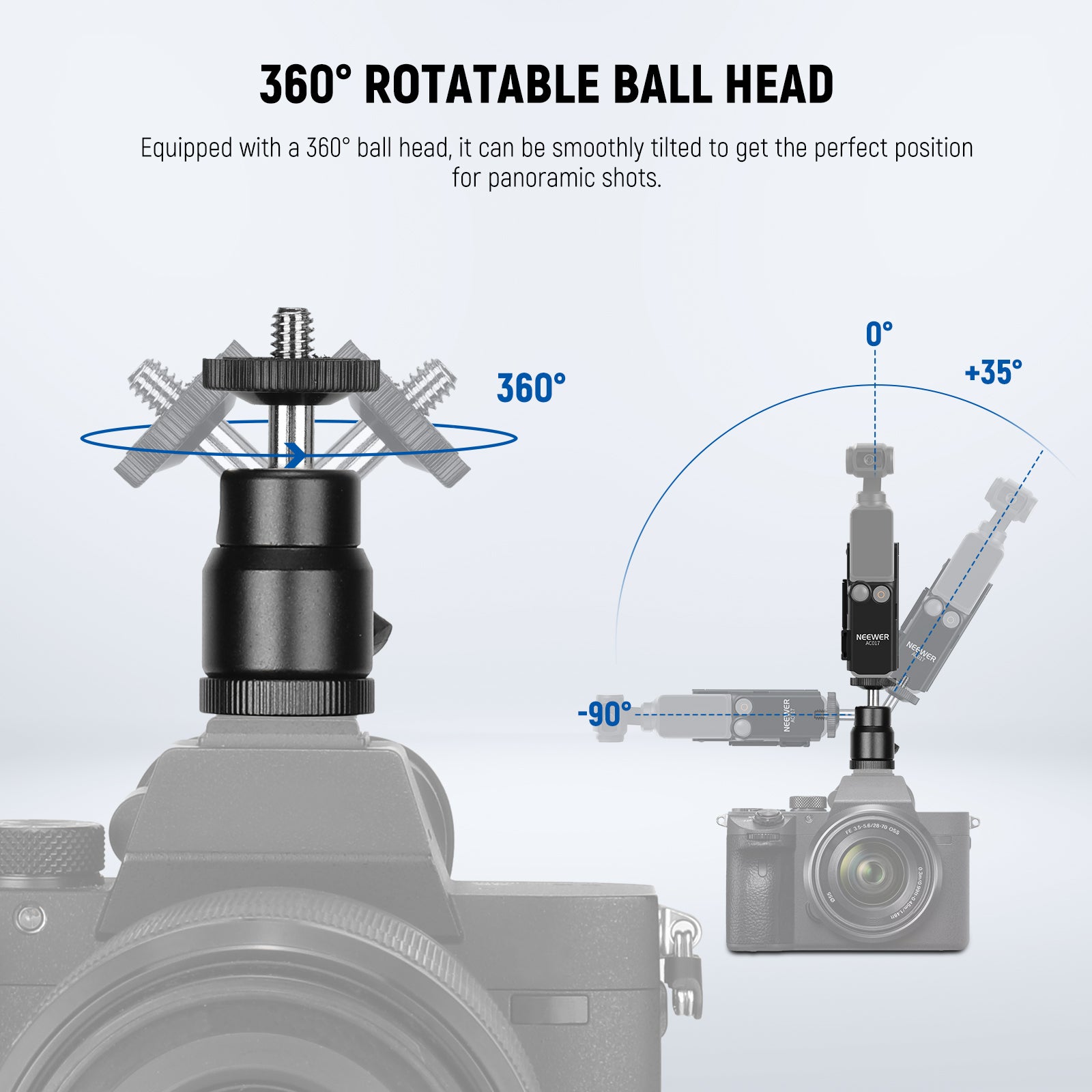 - Dual Camera Setup Kit for Pocket 3- NEEWER GP-68 gimbal camera case mount accessories kit includes an extension adapter mount compatible with DJI Osmo Pocket 3 and its Creator Combo, an adapter bracket, a cold shoe ball head, and a T shaped bolt. Designed for attaching a Pocket 3 to another camera with a cold shoe to simultaneously record footage from two perspectives, perfect for YouTube vlogging, advanced action packed filmmaking and other professional shots