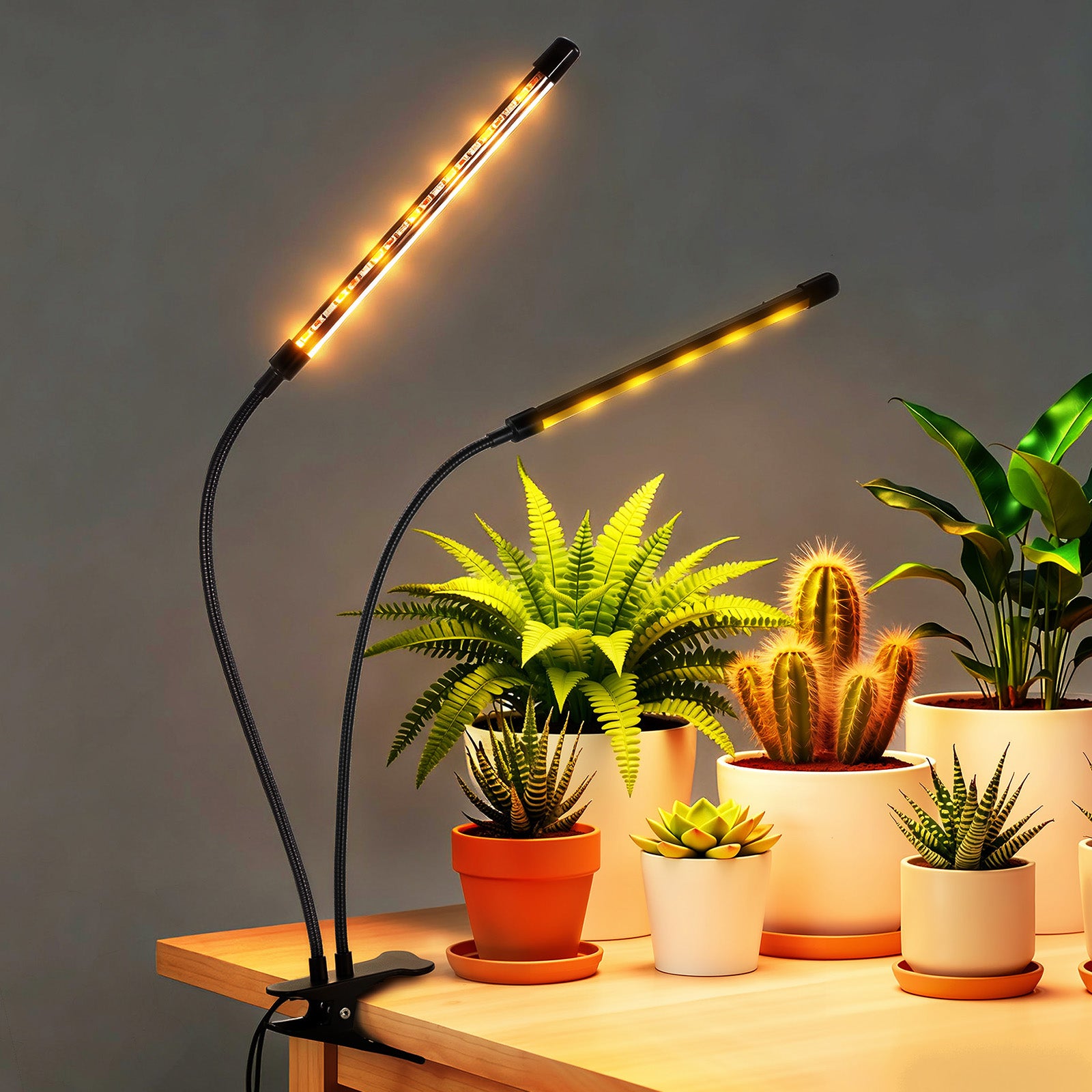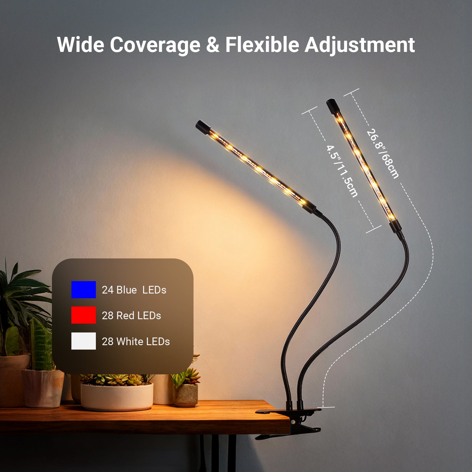 - Wide Coverage & Flexible Adjustment- Easily clamped onto the edge of a desk, the two 4.5" light bars with flexible arms extend up to 26.8" and can bend in any direction to cover more plants and promote their healthy growth