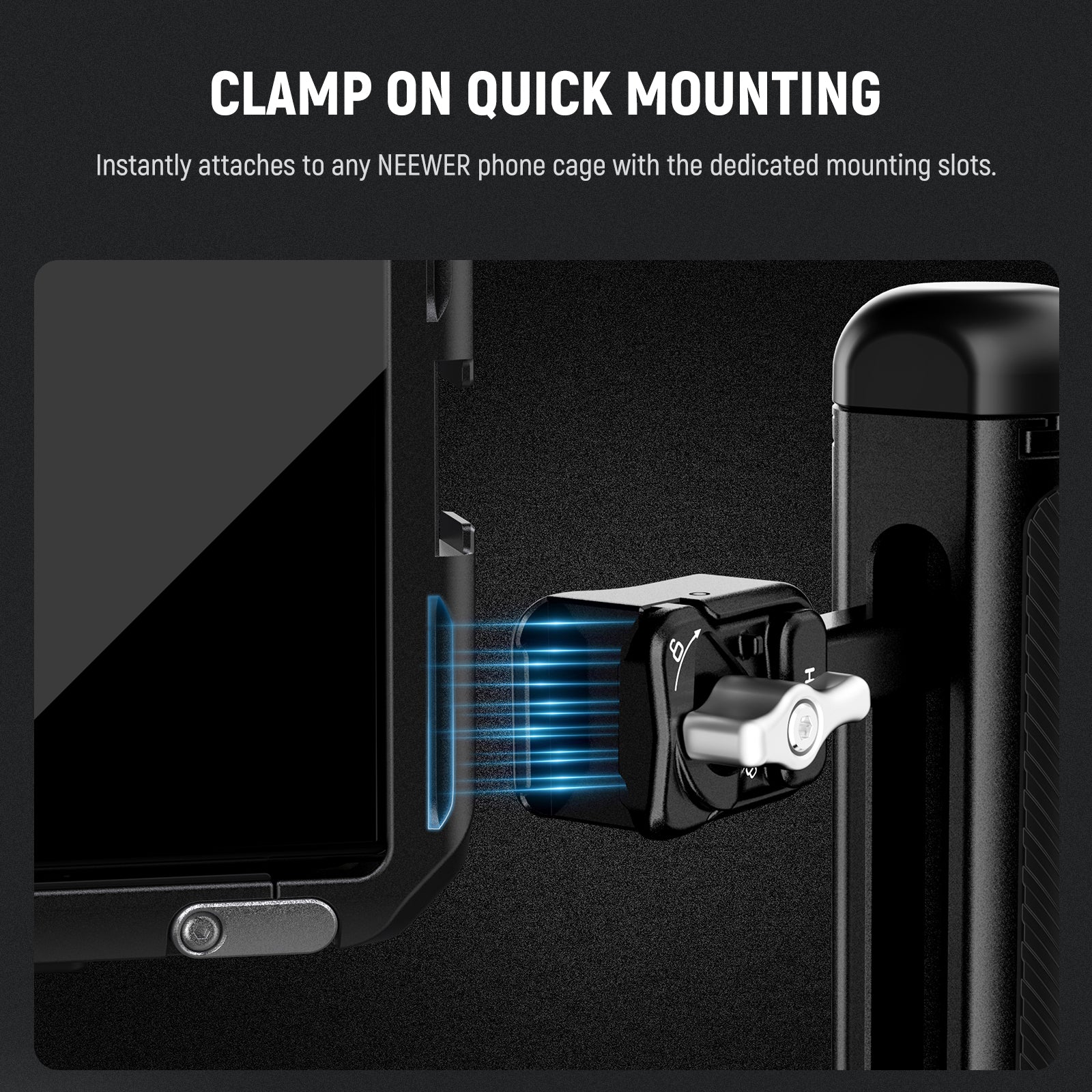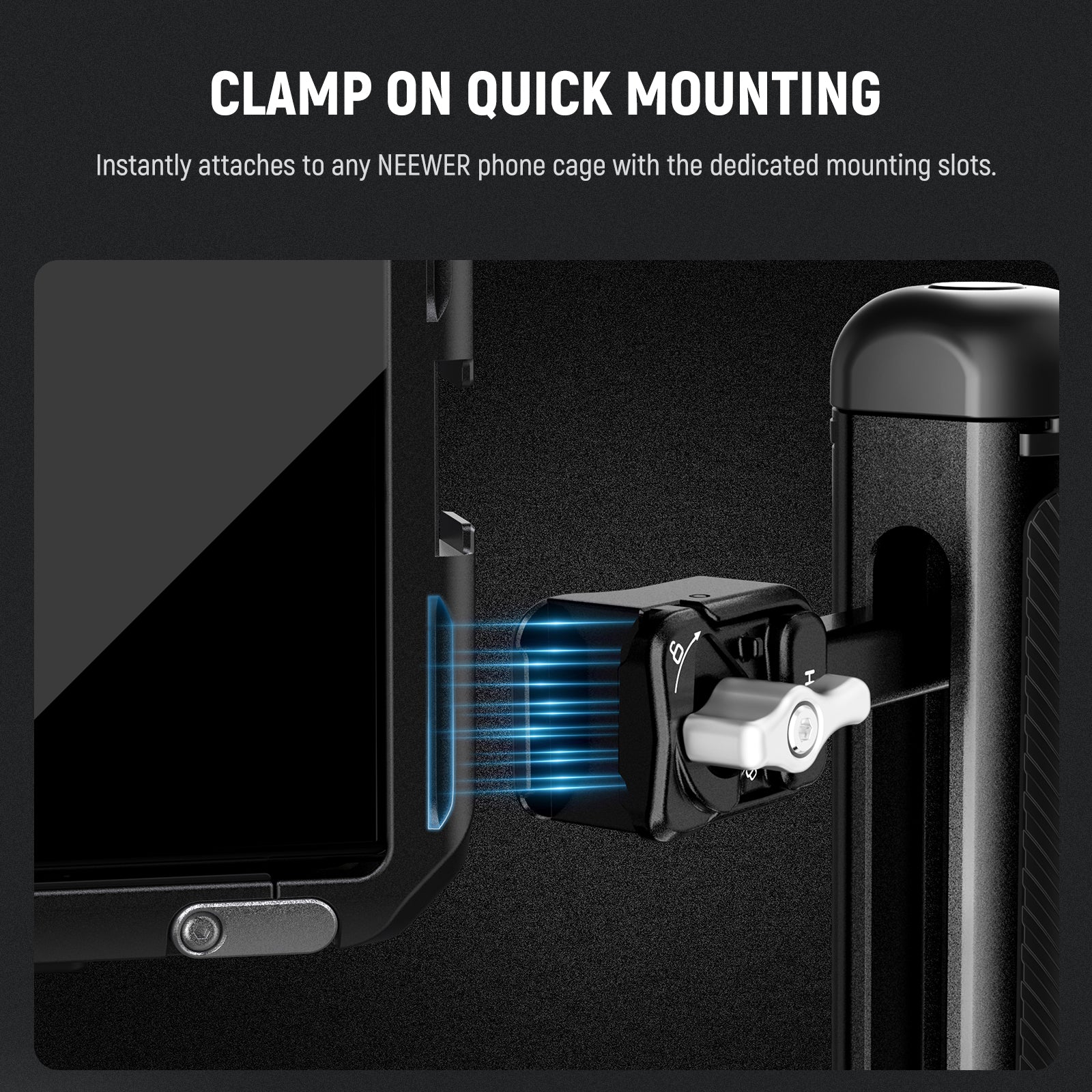 - Clamp On QR Side Handle- Designed for NEEWER phone cage models with quick release clamp slots, including PA043/PA044 for iPhone 15 Pro/15 Pro Max, PA073/PA074 for iPhone 16 Pro/16 Pro Max, PA042/PA082 for Galaxy S24 Ultra/S25 Ultra, and PA091 for Xiaomi 15 Ultra android cell phone. Ideal as content creato,r essential phone camera accessories and influencer must have photography gear